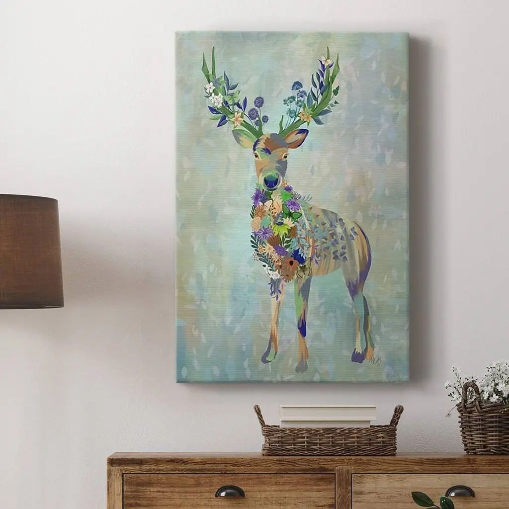 Fantastic Florals Deer, Full Premium Gallery Wrapped Canvas - Ready to Hang A premium hand stretched gallery wrapped canvas print created to last. Featuring a beveled a solid wood stretcher bar, each piece comes ready to hand 6 SIZES AVAILABLE 8''X12'' - Overall Size 12''X18'' - Overall Size 18''X27'' - Overall Size 24''x36'' - Overall Size 32''x48'' - Overall Size 40''x60'' - Overall Size Each piece is made to order. Built to Last Each piece comes ready to hang Solid wood stretcher Fade and Water resistant Made domestically