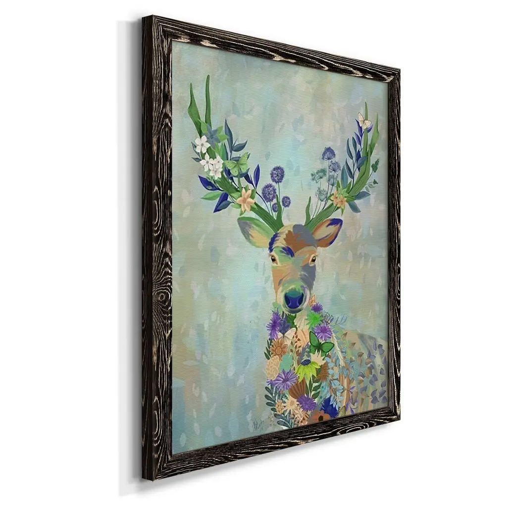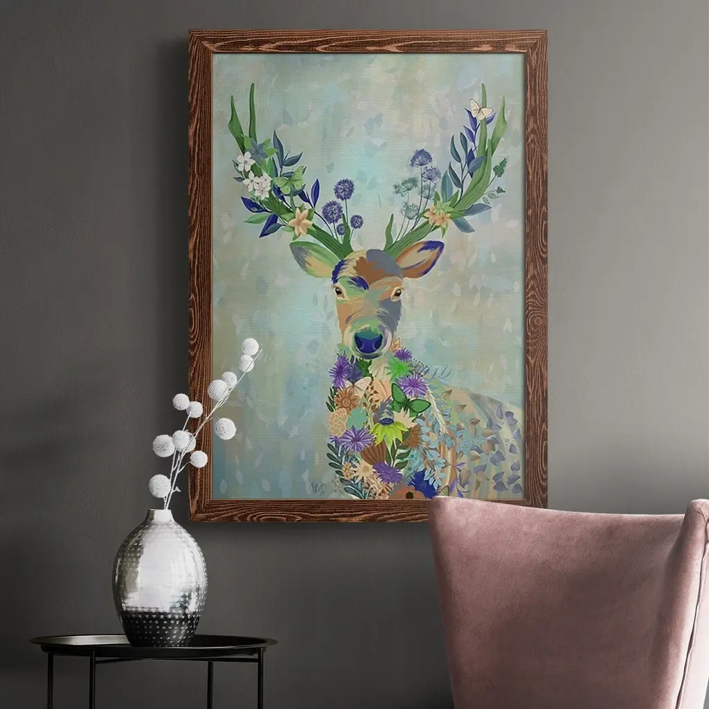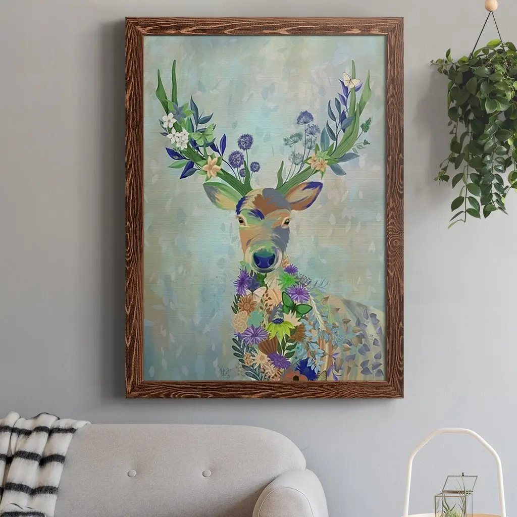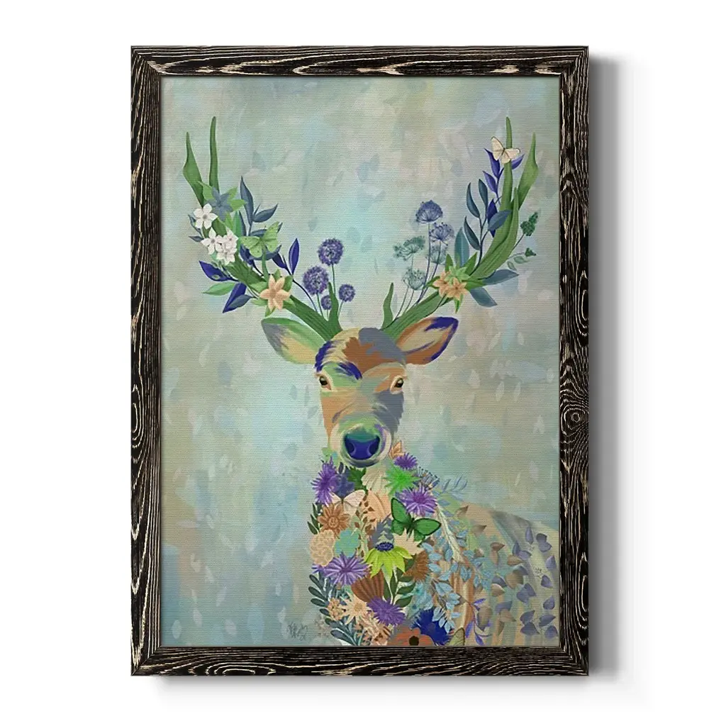 Fantastic Florals Deer, Portrait-Premium Framed Canvas - Ready To Hang - 31.5x43.5 - Grey
