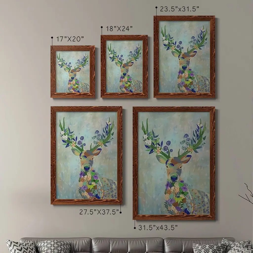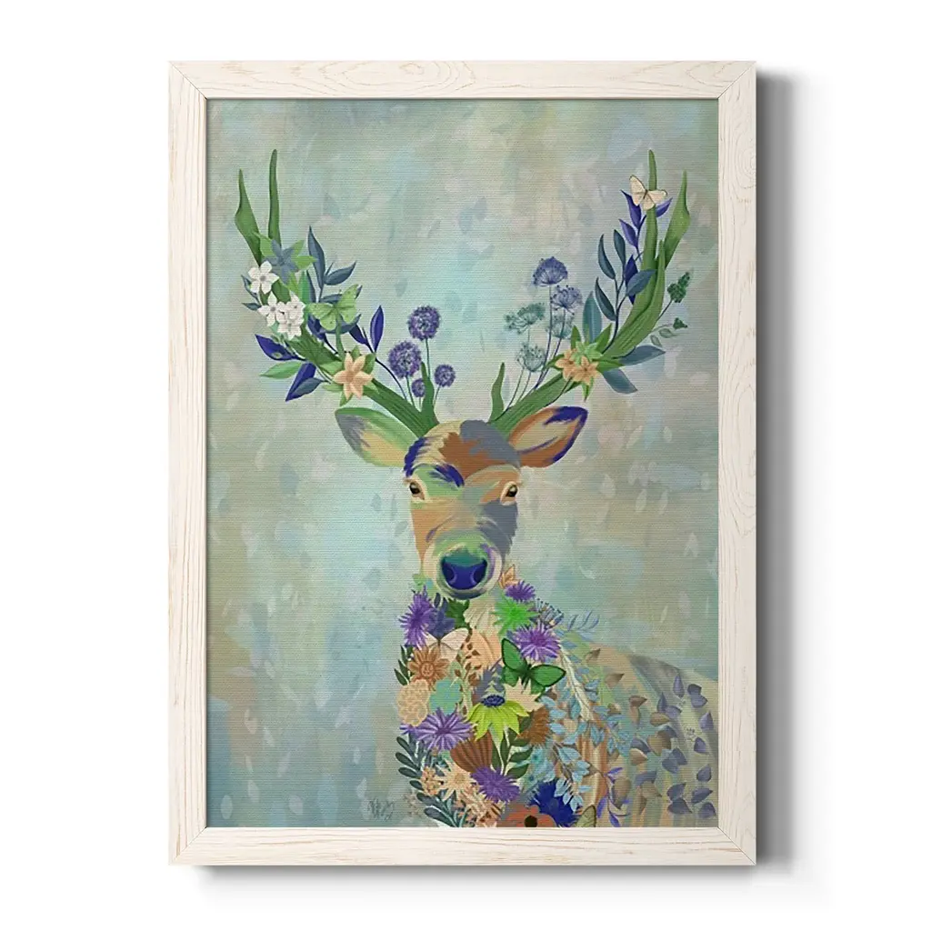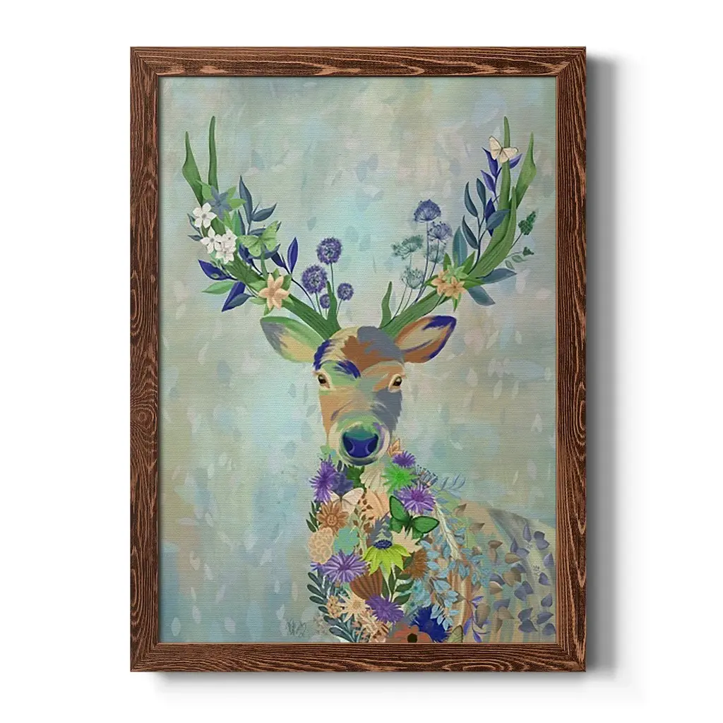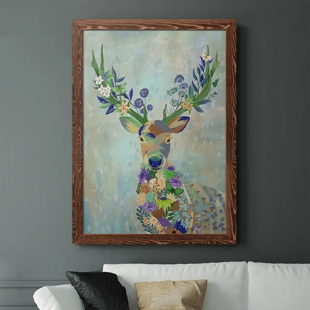 Fantastic Florals Deer, Portrait-Premium Framed Canvas - Ready To Hang - 31.5x43.5 - Grey