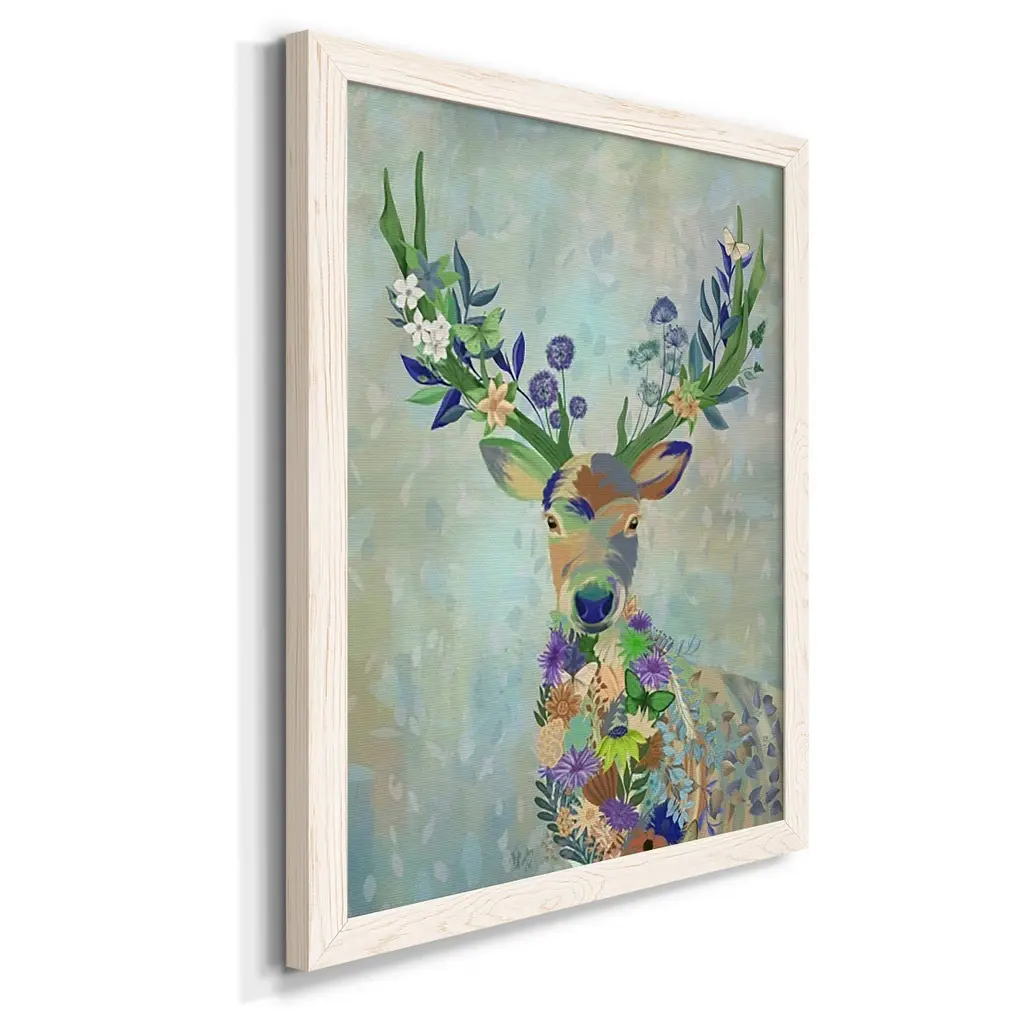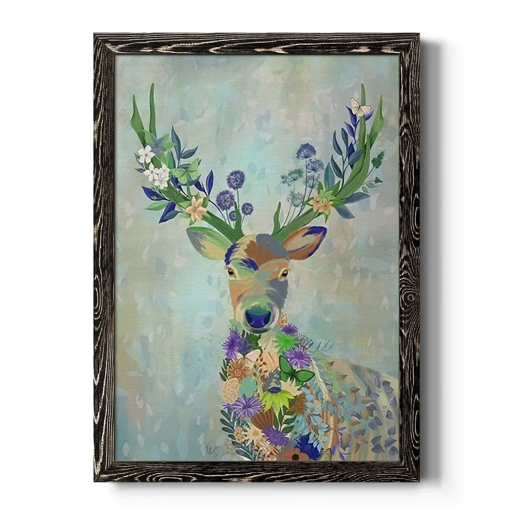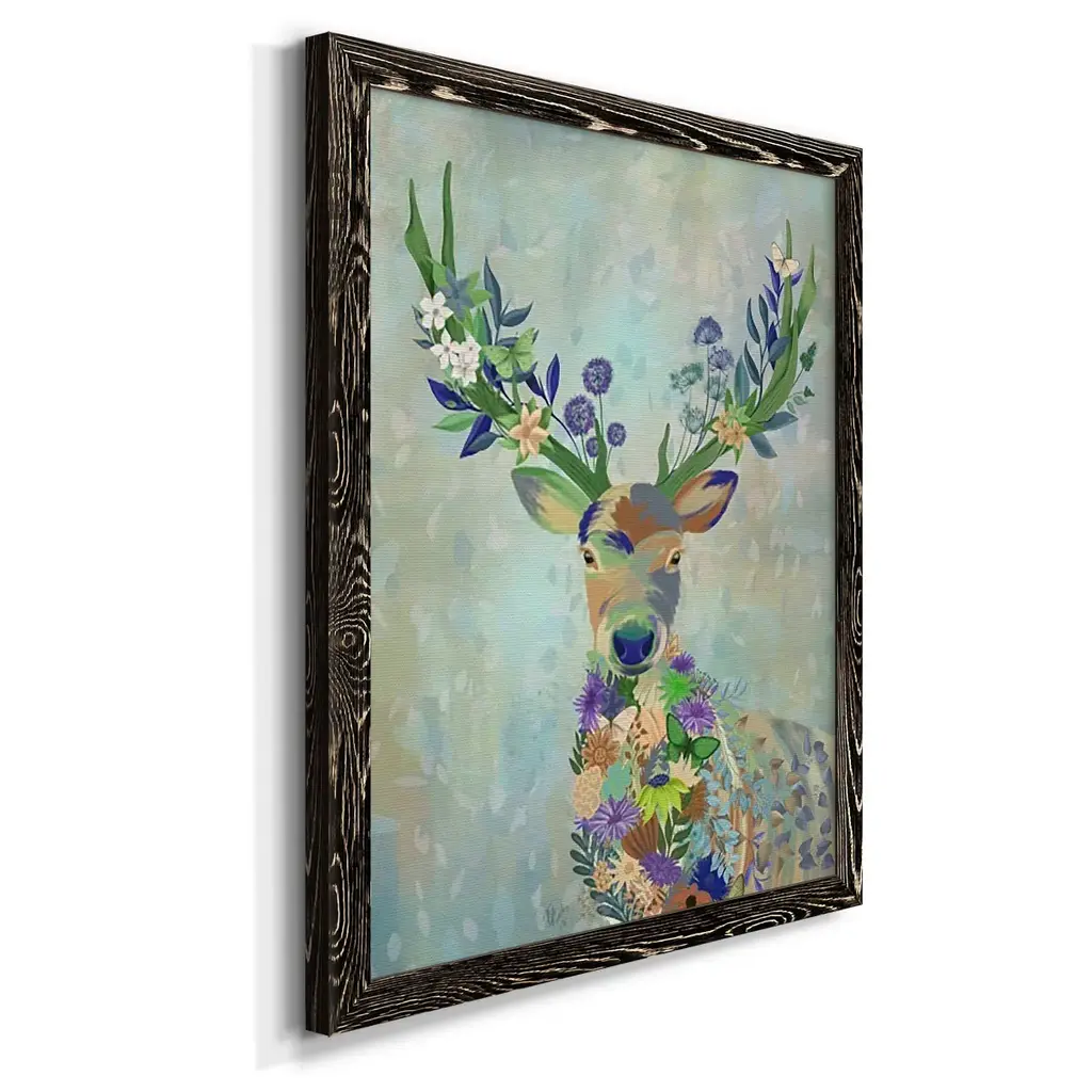 Fantastic Florals Deer, Portrait-Premium Framed Canvas - Ready To Hang - 31.5x43.5 - White