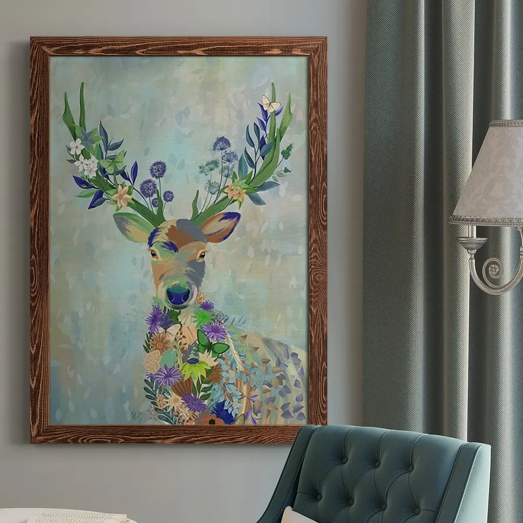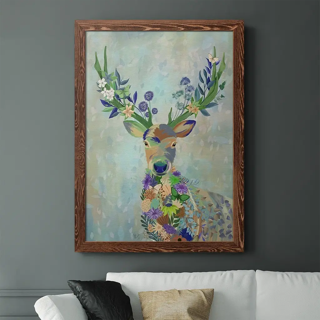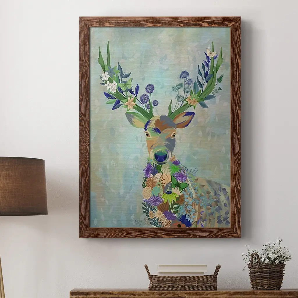 Fantastic Florals Deer, Portrait-Premium Framed Canvas - Ready To Hang - 31.5x43.5 - White