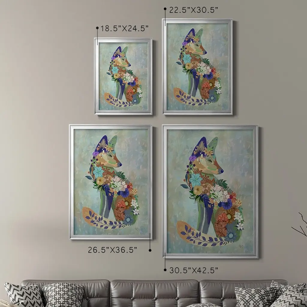 Fantastic Florals Fox, Sitting Premium Framed Print - Ready to Hang A Premium Framed Print created to last. Framed in distressed wood and available in an array of sizes and colors Featuring a beveled a solid wood stretcher bar, each piece comes ready to hand 4 SIZES AVAILABLE 30.5''X42.5'' - Overall Size 26.5'X36.5'' - Overall Size 22.5''x30.5'' - Overall Size 18.5''x24.5'' - Overall Size Each piece is made to order. Each piece comes with hanging hardware. Made in the USA Ready to Hang