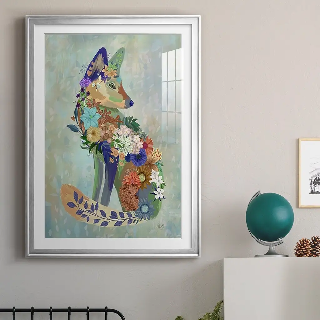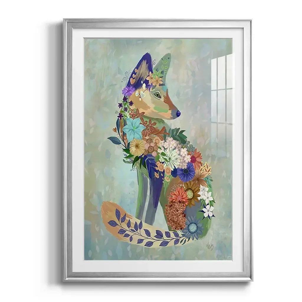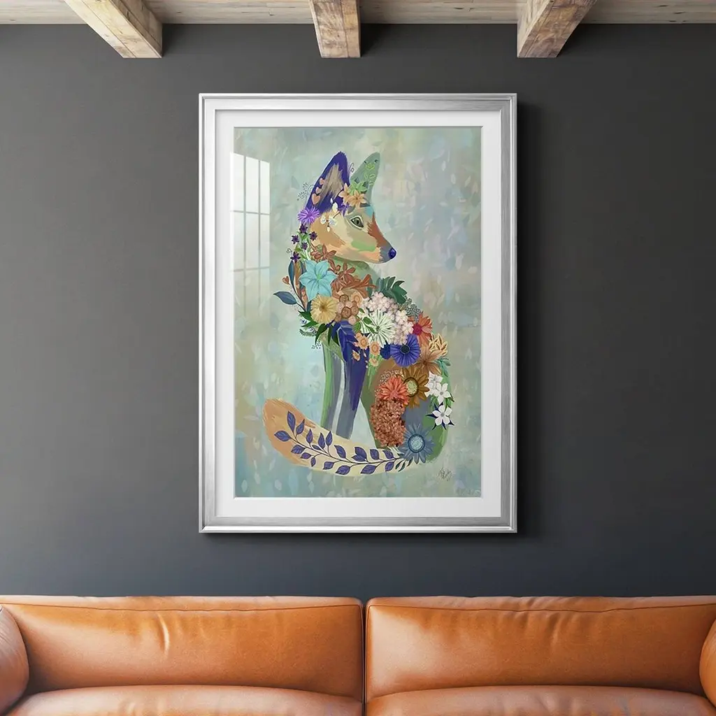Fantastic Florals Fox, Sitting Premium Framed Print - Ready To Hang - 22.5x30.5 - Silver