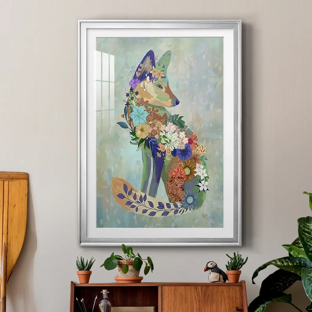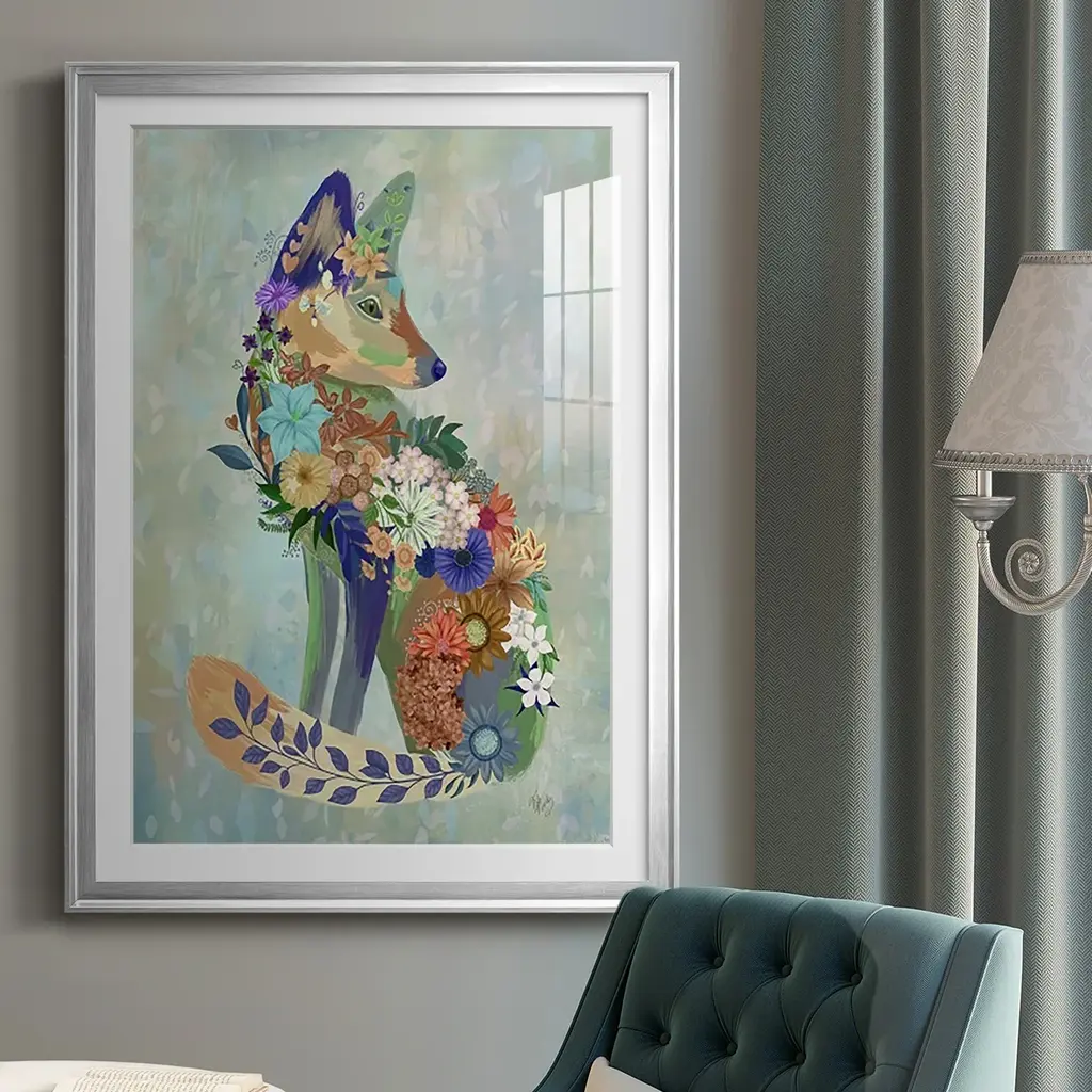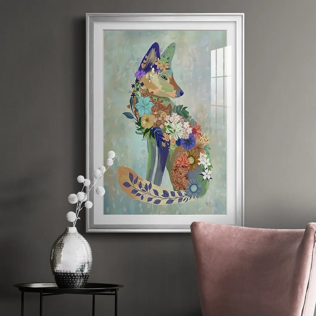 Fantastic Florals Fox, Sitting Premium Framed Print - Ready To Hang - 22.5x30.5 - Silver