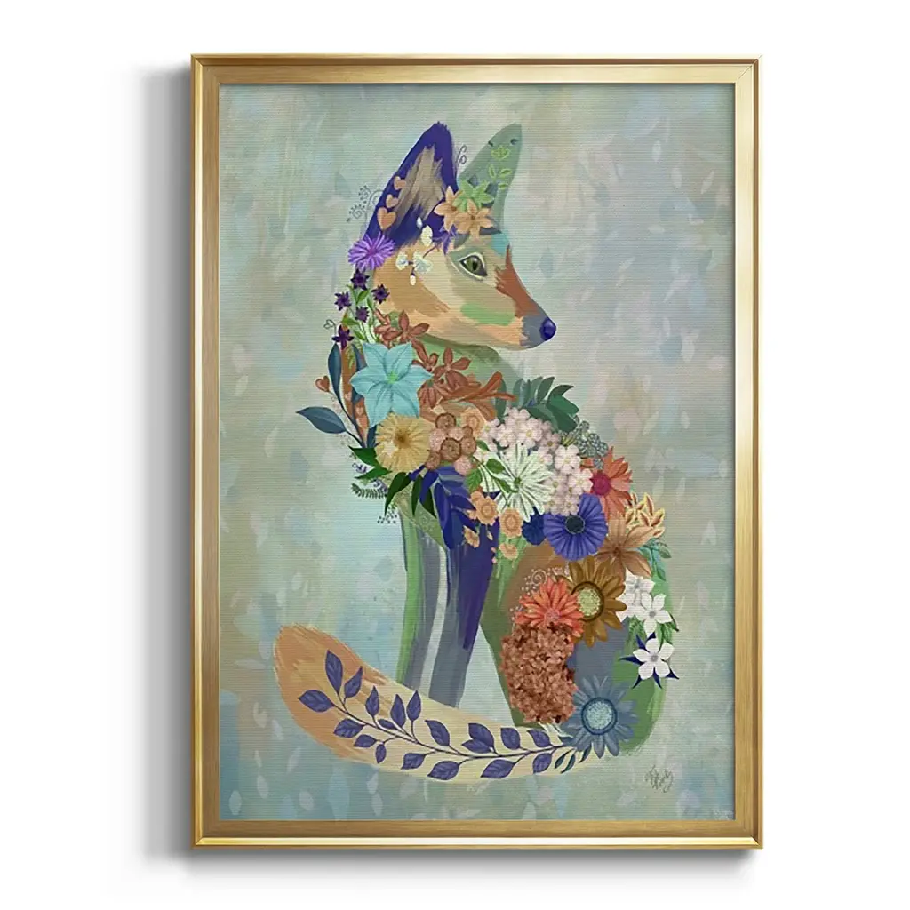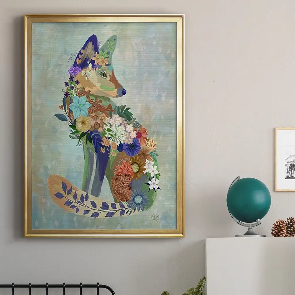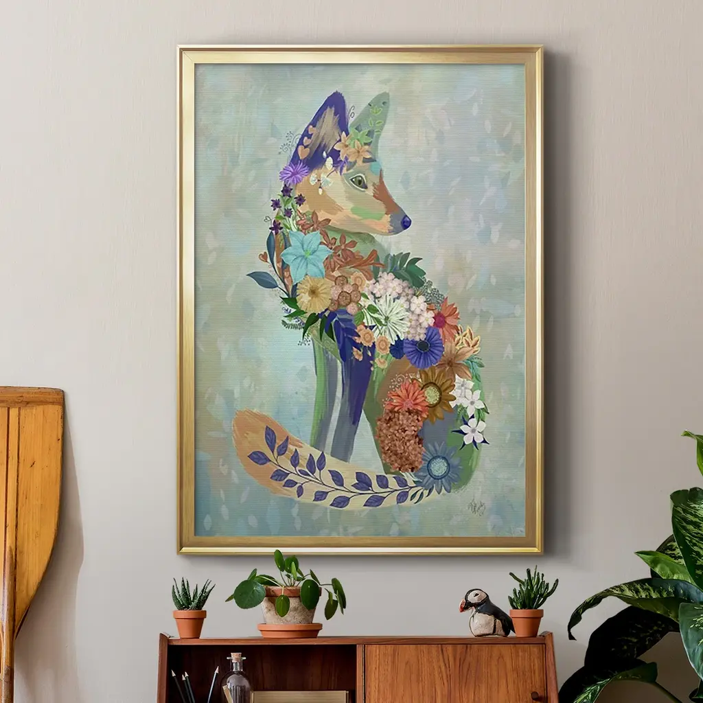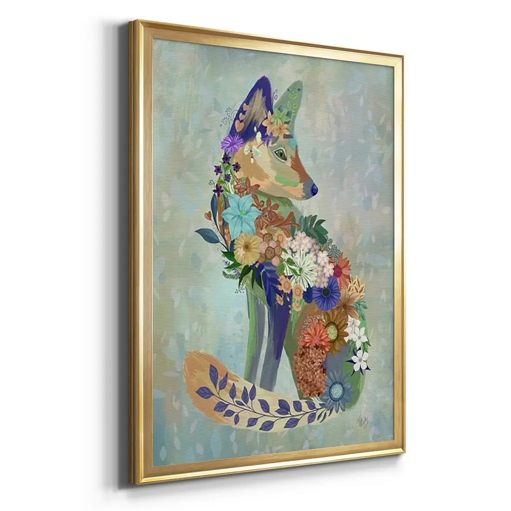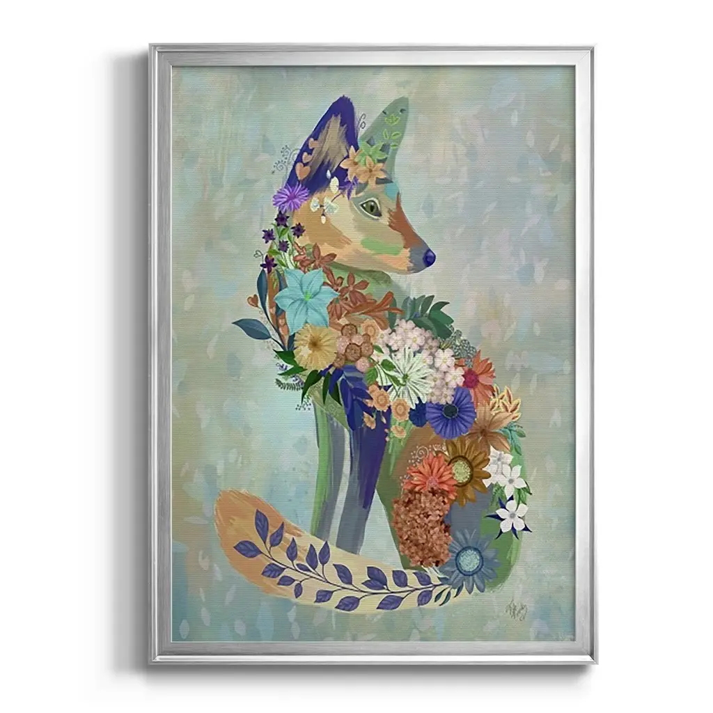 Fantastic Florals Fox, Sitting Premium Framed Print - Ready to Hang A Premium Framed Print created to last. Framed in distressed wood and available in an array of sizes and colors Featuring a beveled a solid wood stretcher bar, each piece comes ready to hand 4 SIZES AVAILABLE 30.5''X42.5'' - Overall Size 26.5'X36.5'' - Overall Size 22.5''x30.5'' - Overall Size 18.5''x24.5'' - Overall Size Each piece is made to order. Each piece comes with hanging hardware. Made in the USA Ready to Hang