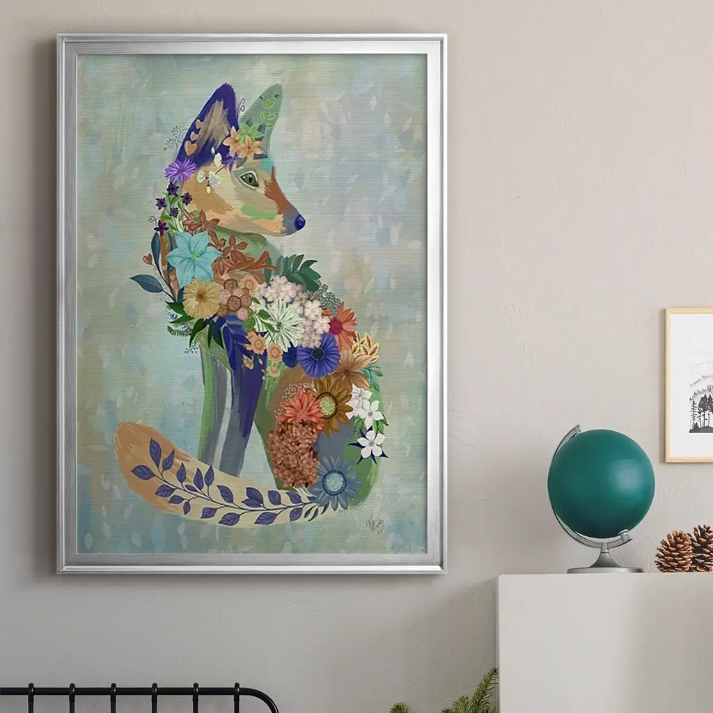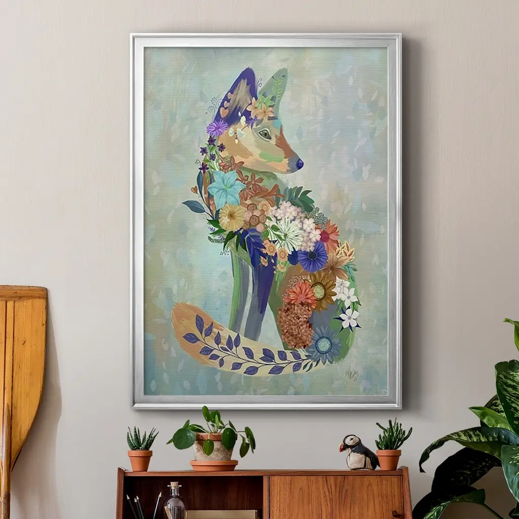 Fantastic Florals Fox, Sitting Premium Framed Print - Ready To Hang - 30.5x42.5 - Silver
