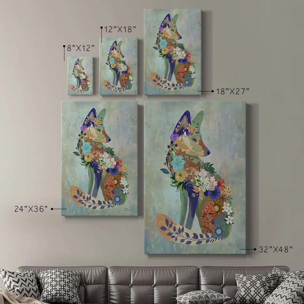 Fantastic Florals Fox, Sitting Premium Gallery Wrapped Canvas - Ready to Hang A premium hand stretched gallery wrapped canvas print created to last. Featuring a beveled a solid wood stretcher bar, each piece comes ready to hand 6 SIZES AVAILABLE 8''X12'' - Overall Size 12''X18'' - Overall Size 18''X27'' - Overall Size 24''x36'' - Overall Size 32''x48'' - Overall Size 40''x60'' - Overall Size Each piece is made to order. Built to Last Each piece comes ready to hang Solid wood stretcher Fade and Water resistant Made domestically