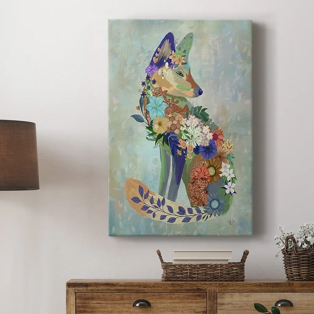 Fantastic Florals Fox, Sitting Premium Gallery Wrapped Canvas - Ready to Hang A premium hand stretched gallery wrapped canvas print created to last. Featuring a beveled a solid wood stretcher bar, each piece comes ready to hand 6 SIZES AVAILABLE 8''X12'' - Overall Size 12''X18'' - Overall Size 18''X27'' - Overall Size 24''x36'' - Overall Size 32''x48'' - Overall Size 40''x60'' - Overall Size Each piece is made to order. Built to Last Each piece comes ready to hang Solid wood stretcher Fade and Water resistant Made domestically