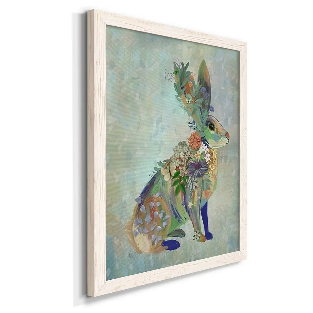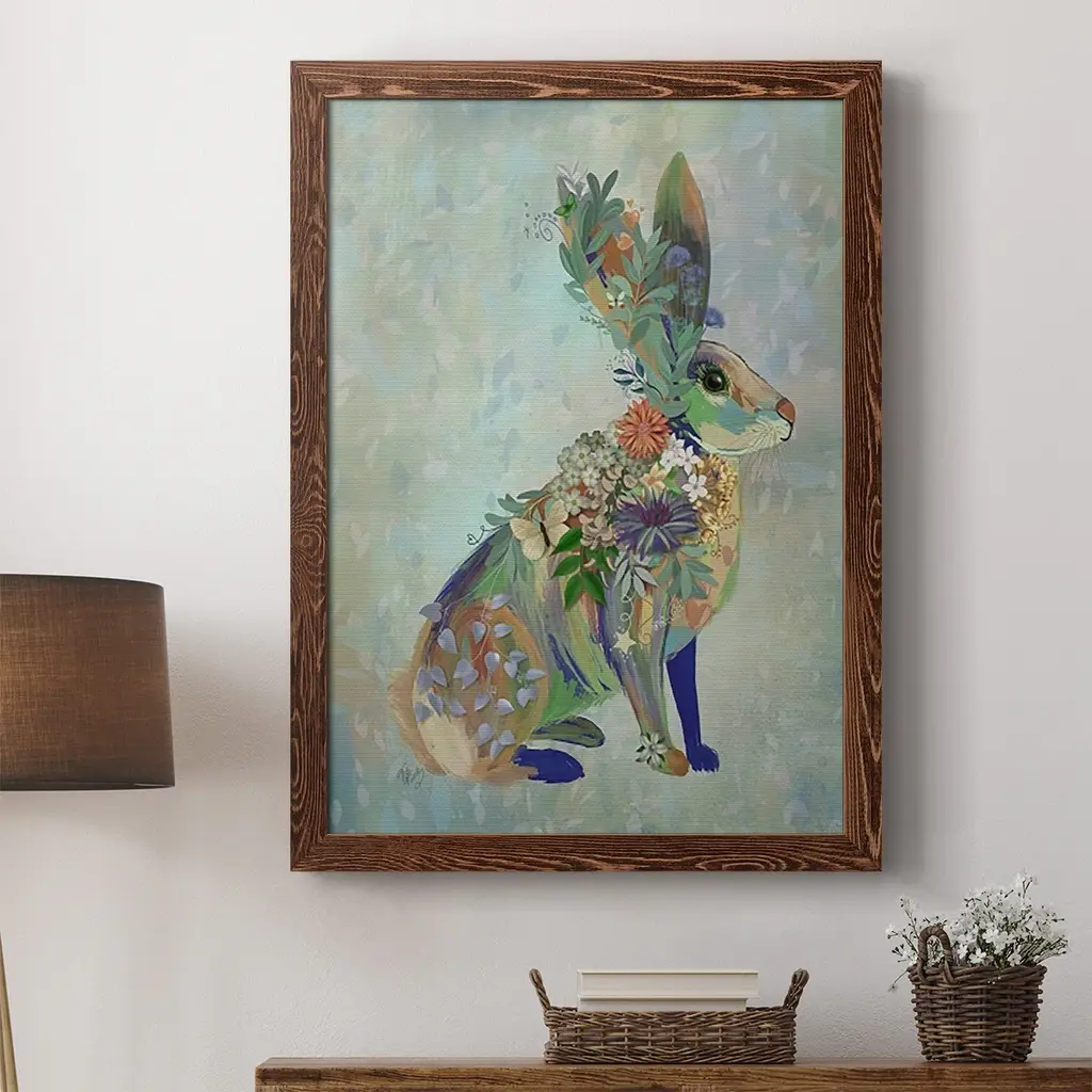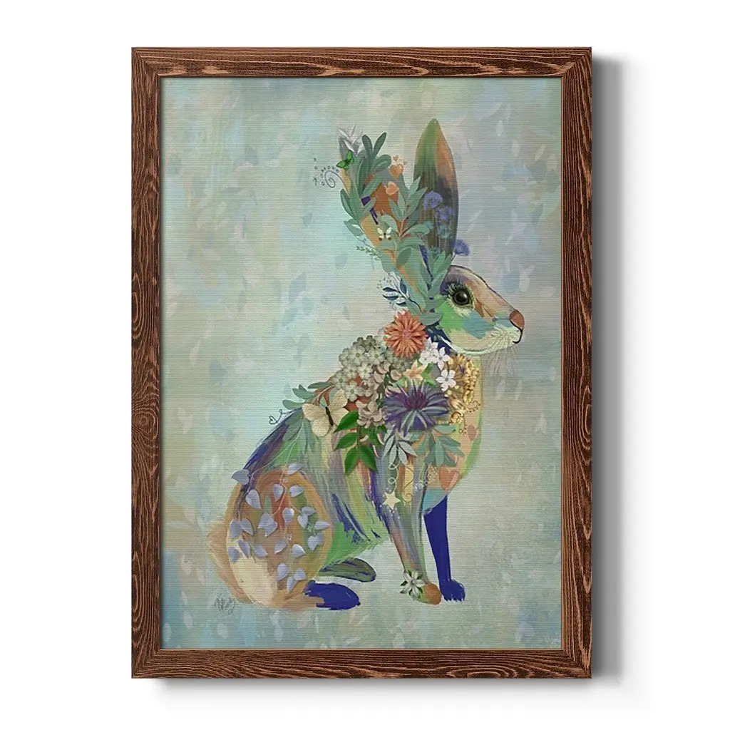 Fantastic Florals Hare, Sitting-Premium Framed Canvas - Ready To Hang - 27.5x37.5 - Black