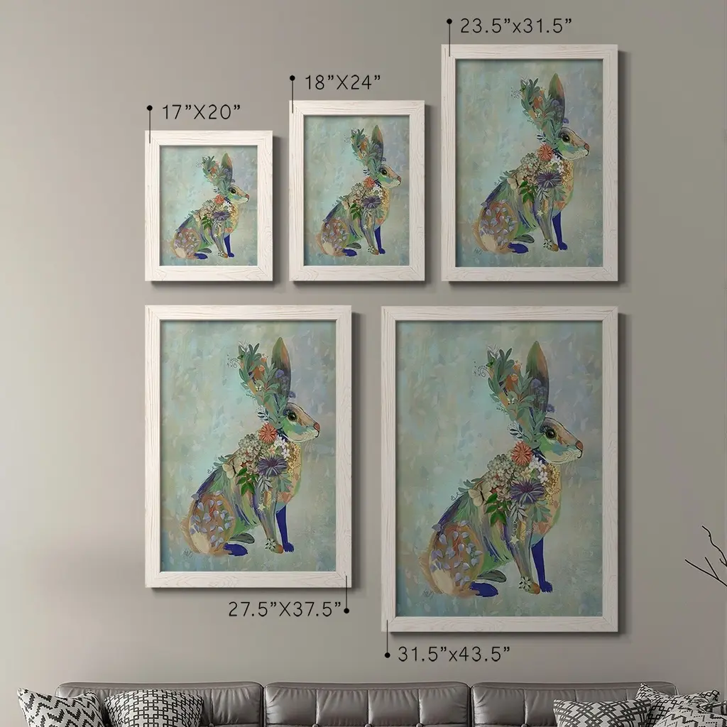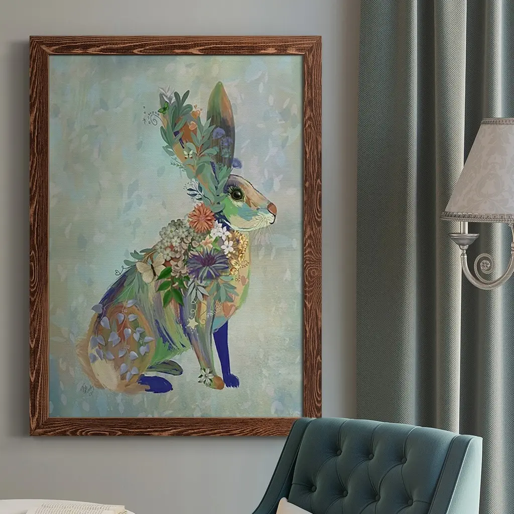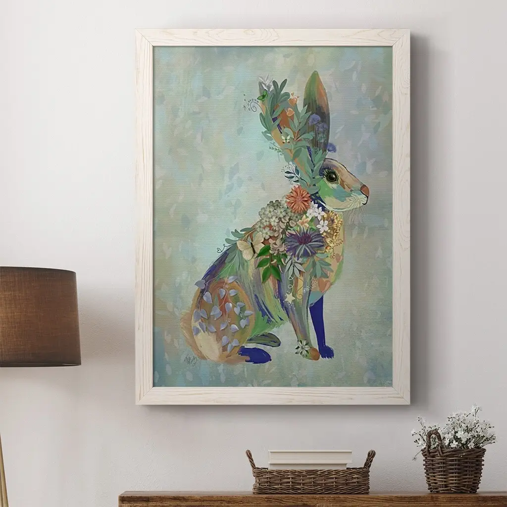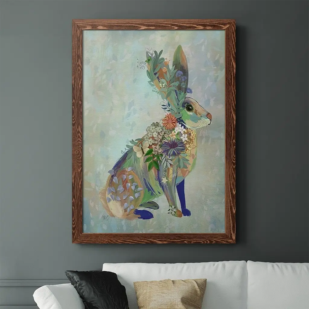 Fantastic Florals Hare, Sitting-Premium Framed Canvas - Ready To Hang - 27.5x37.5 - Black