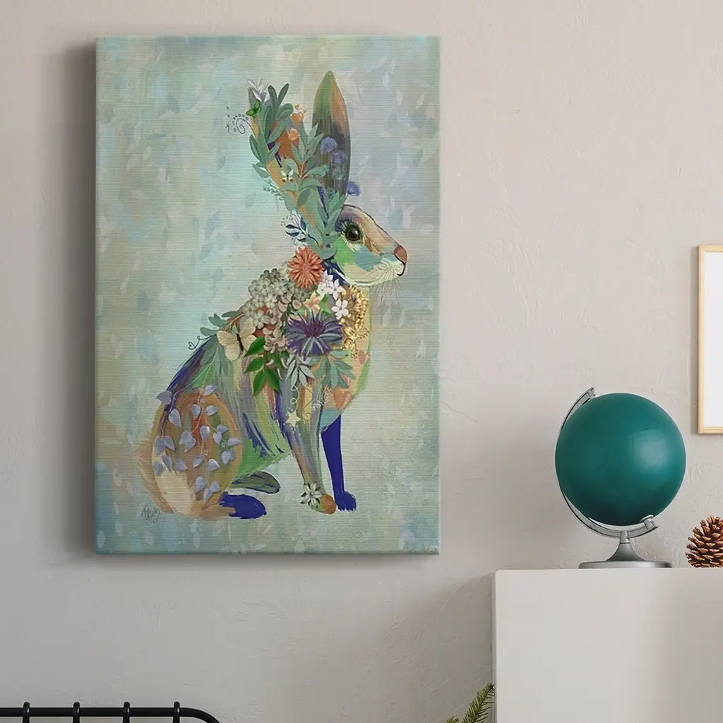 Fantastic Florals Hare, Sitting Premium Gallery Wrapped Canvas - Ready to Hang A premium hand stretched gallery wrapped canvas print created to last. Featuring a beveled a solid wood stretcher bar, each piece comes ready to hand 6 SIZES AVAILABLE 8''X12'' - Overall Size 12''X18'' - Overall Size 18''X27'' - Overall Size 24''x36'' - Overall Size 32''x48'' - Overall Size 40''x60'' - Overall Size Each piece is made to order. Built to Last Each piece comes ready to hang Solid wood stretcher Fade and Water resistant Made domestically