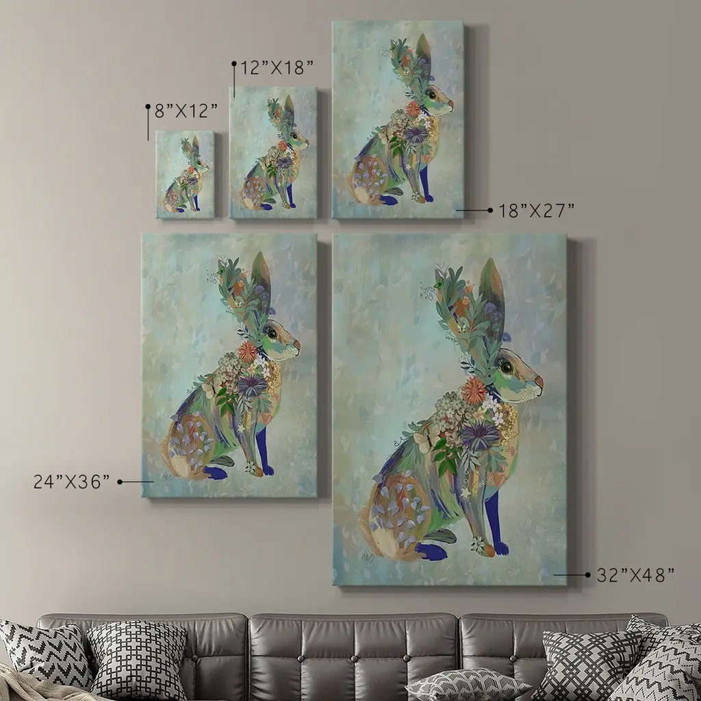 Fantastic Florals Hare, Sitting Premium Gallery Wrapped Canvas - Ready to Hang A premium hand stretched gallery wrapped canvas print created to last. Featuring a beveled a solid wood stretcher bar, each piece comes ready to hand 6 SIZES AVAILABLE 8''X12'' - Overall Size 12''X18'' - Overall Size 18''X27'' - Overall Size 24''x36'' - Overall Size 32''x48'' - Overall Size 40''x60'' - Overall Size Each piece is made to order. Built to Last Each piece comes ready to hang Solid wood stretcher Fade and Water resistant Made domestically