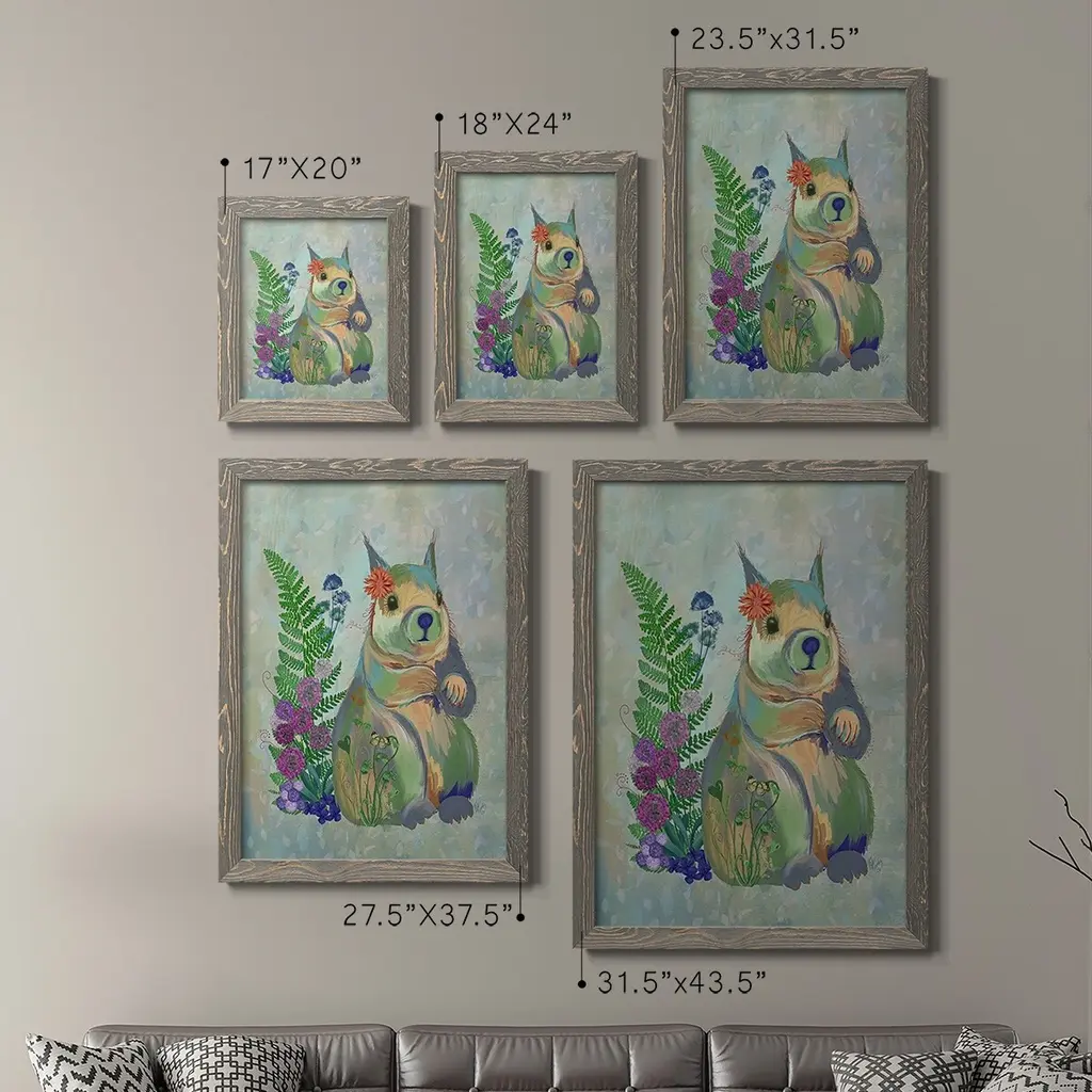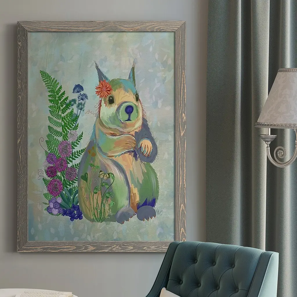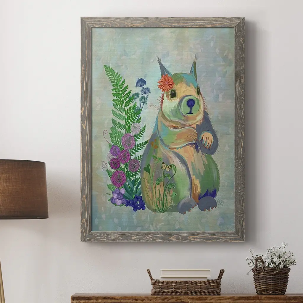 Fantastic Florals Squirrel-Premium Framed Canvas - Ready To Hang - 27.5x37.5 - Walnut