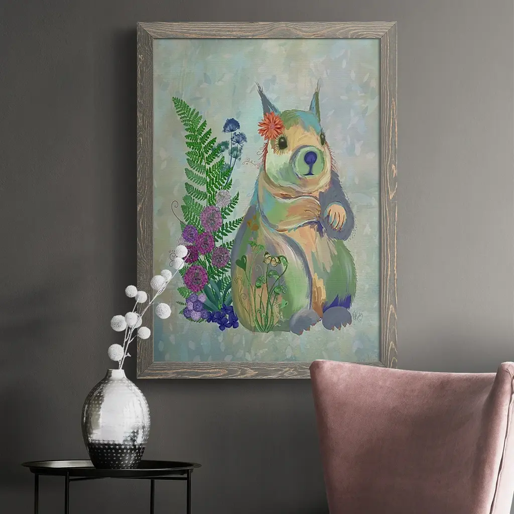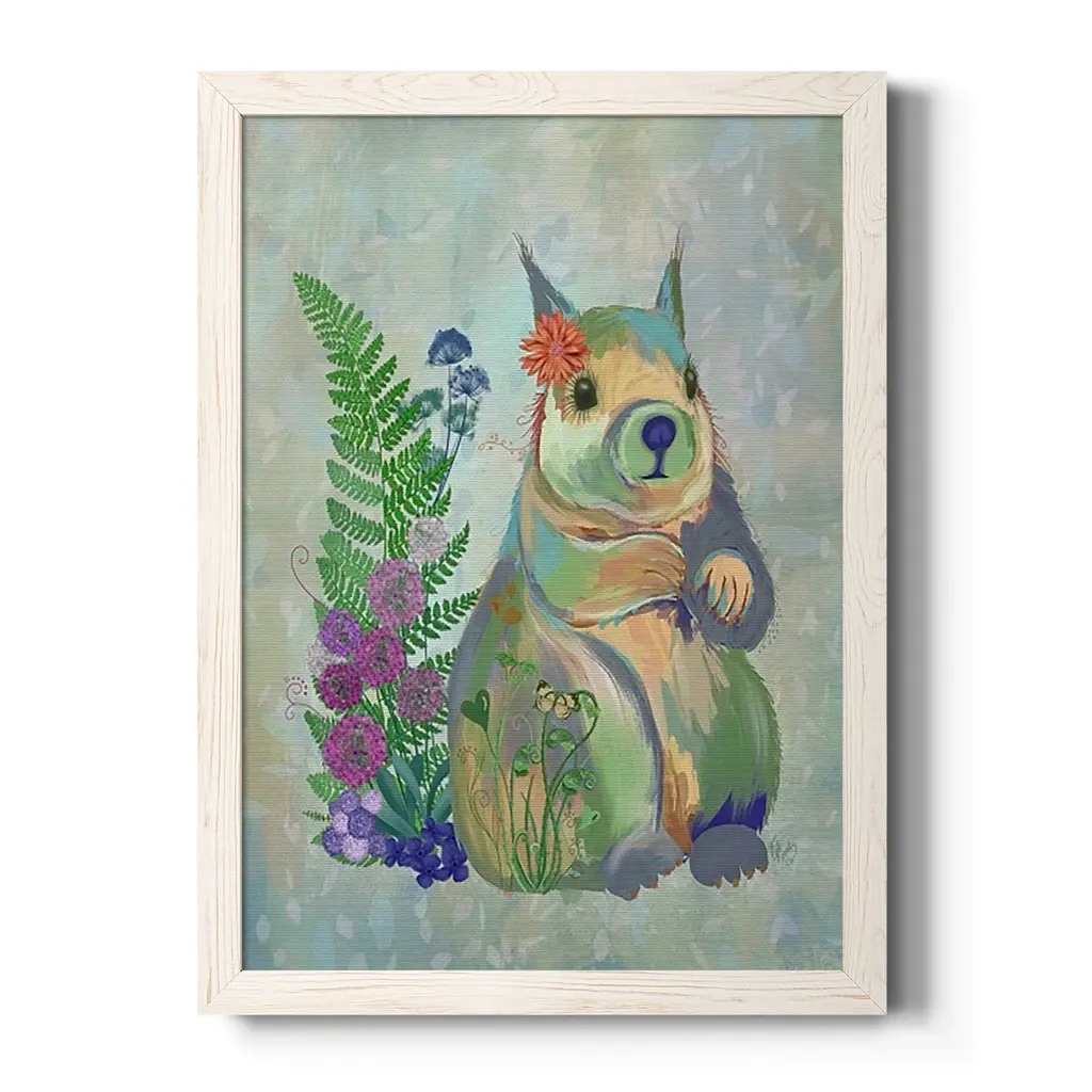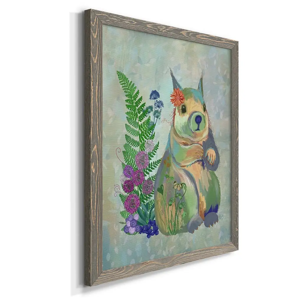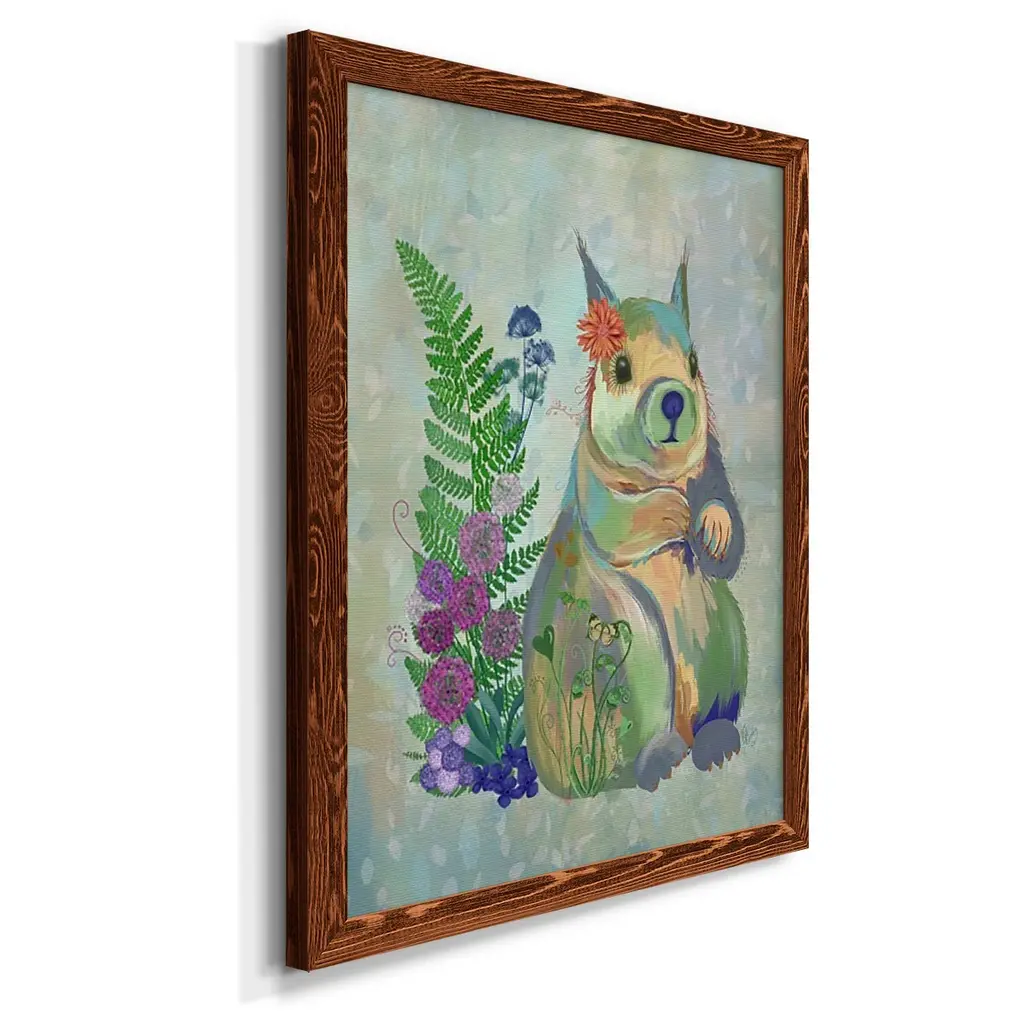 Fantastic Florals Squirrel-Premium Framed Canvas - Ready To Hang - 31.5x43.5 - Walnut