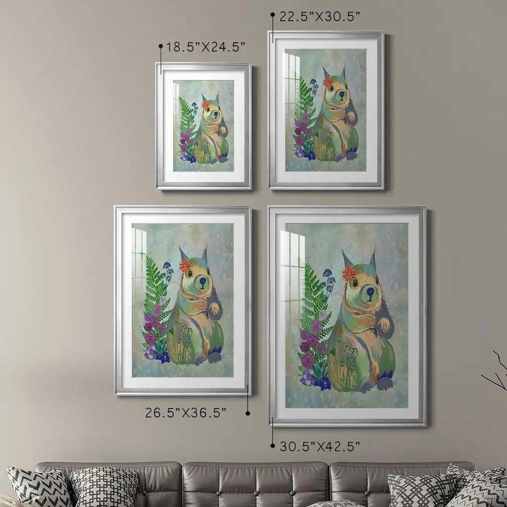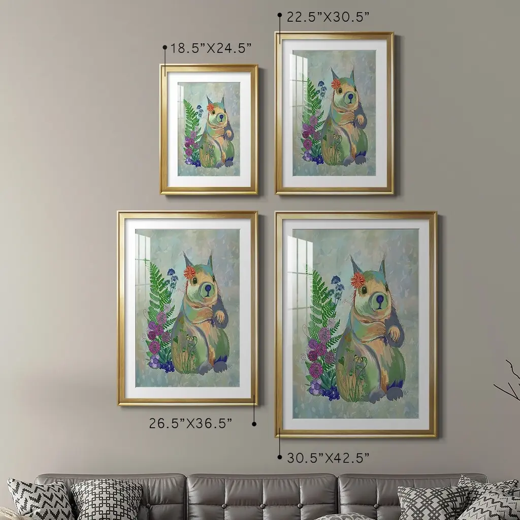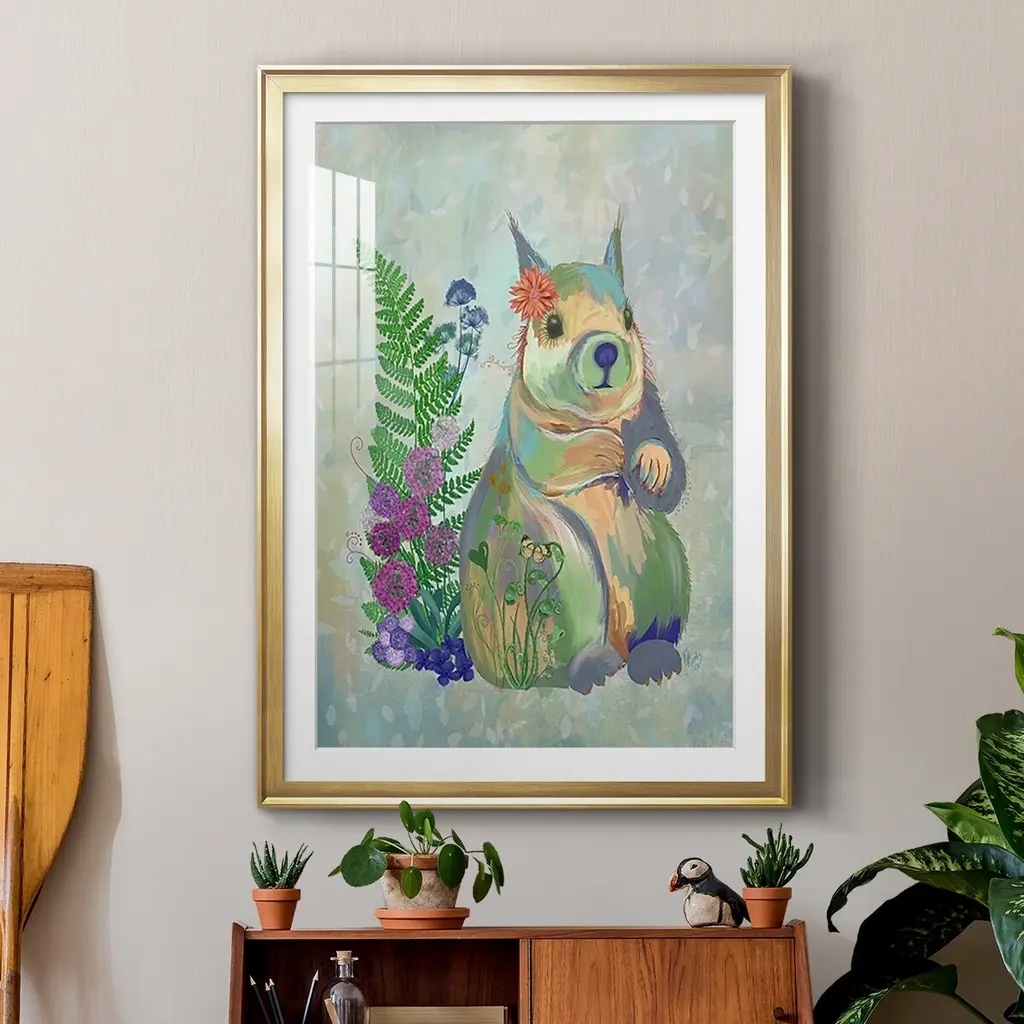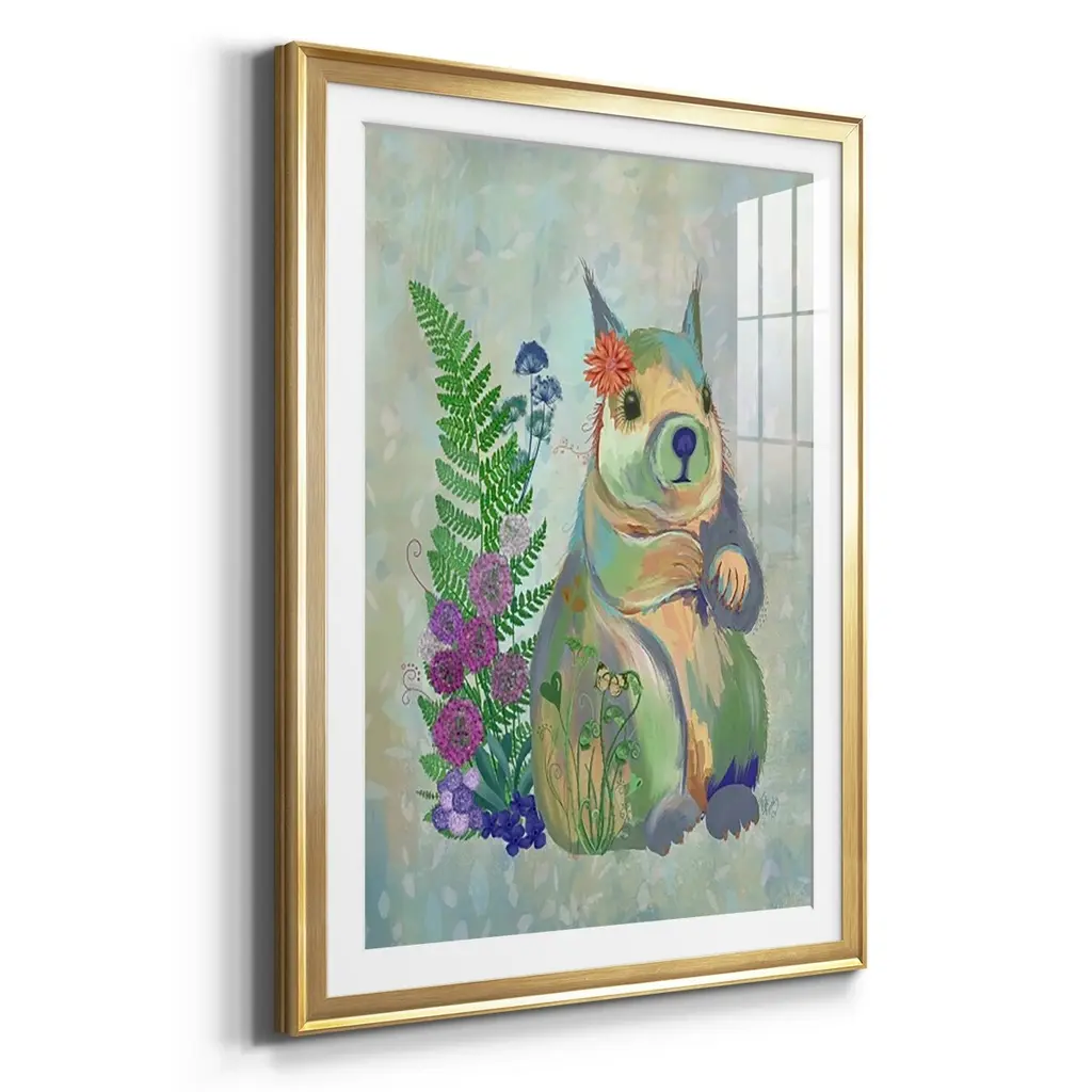 Fantastic Florals Squirrel Premium Framed Print - Ready to Hang A Premium Framed Print created to last. Framed in distressed wood and available in an array of sizes and colors Featuring a beveled a solid wood stretcher bar, each piece comes ready to hand 4 SIZES AVAILABLE 30.5''X42.5'' - Overall Size 26.5'X36.5'' - Overall Size 22.5''x30.5'' - Overall Size 18.5''x24.5'' - Overall Size Each piece is made to order. Each piece comes with hanging hardware. Made in the USA Ready to Hang Giclee Paper Print Acrylic Glass Beveled Matt Board
