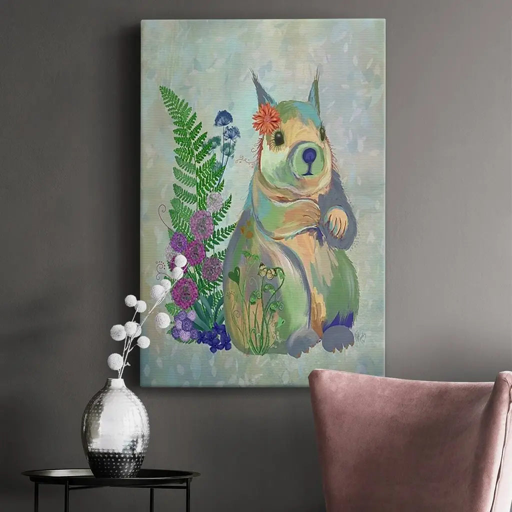 Fantastic Florals Squirrel Premium Gallery Wrapped Canvas - Ready To Hang - 8X12