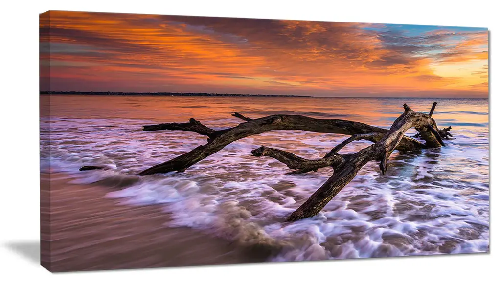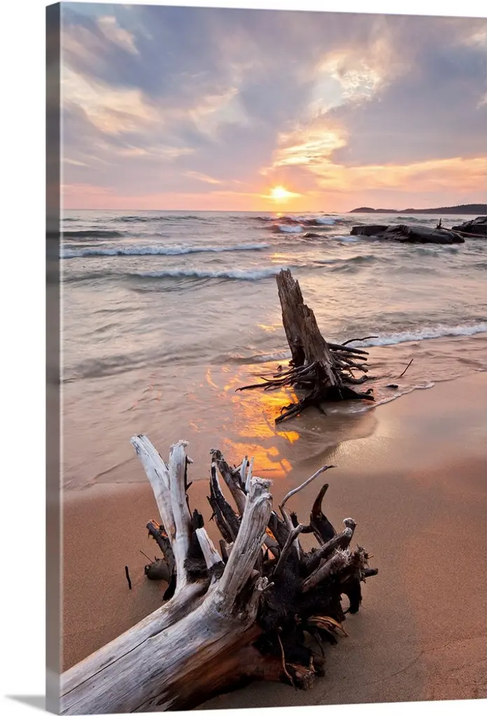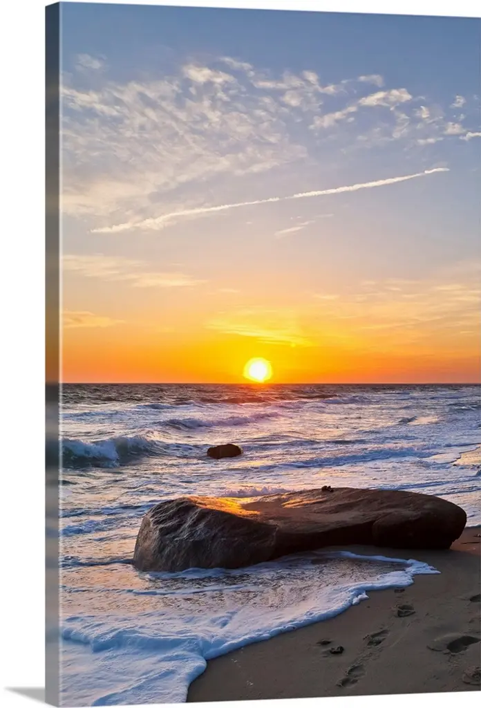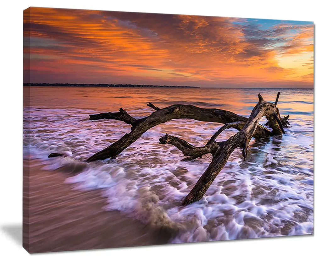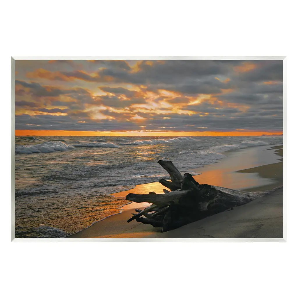 Fantastic Sandy Shore At Sunset, Seashore Canvas Art Print, 60"x28"