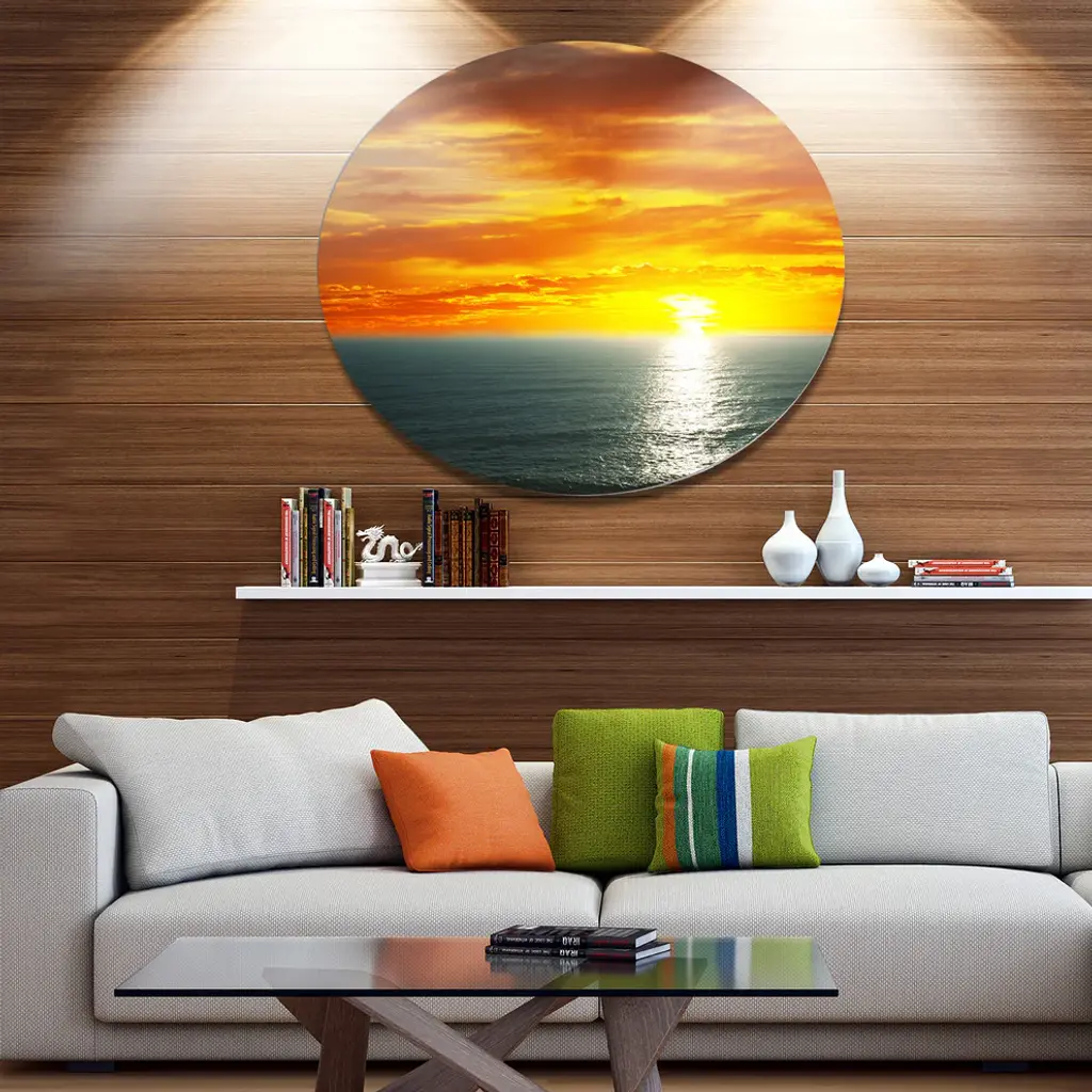 Fantastic Sunset Over Sea Waters, Seashore Disc Metal Artwork, 36"