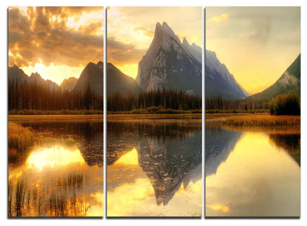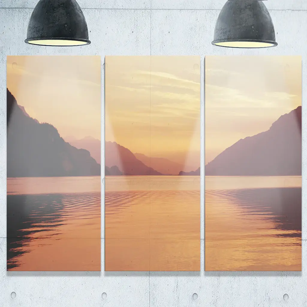 "Fantastic Swiss Lake At Sunset In Brienz" Metal Wall Art, 3 Panels, 36"x28"