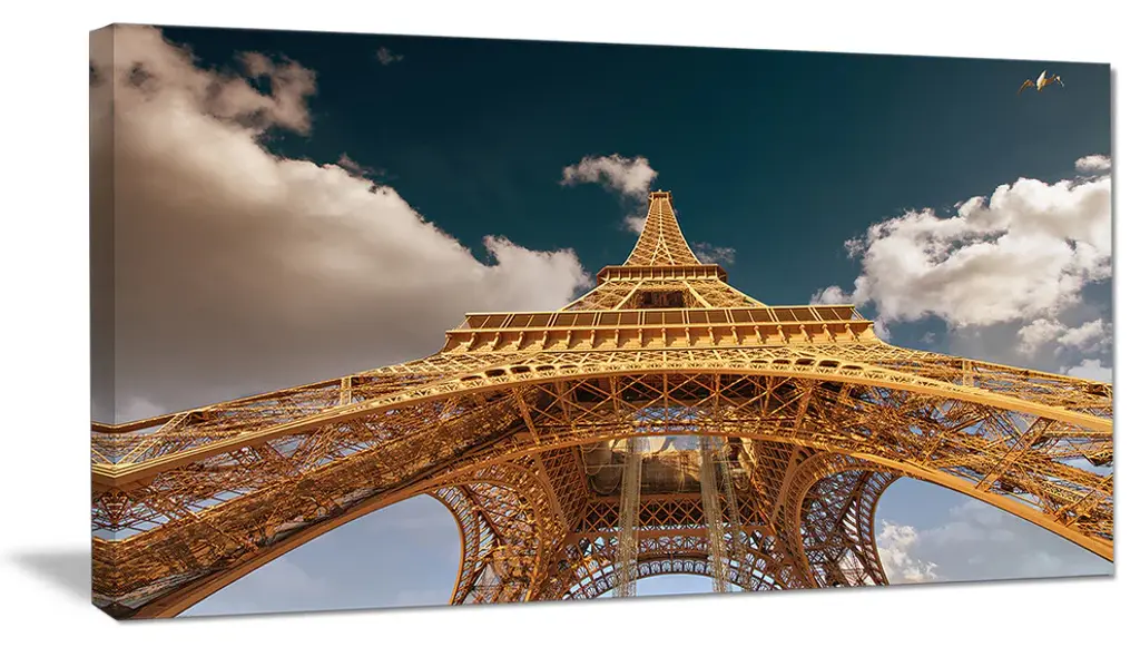 The Fantastic View of Paris Eiffel Tower from Ground canvas art print is sure to make an impression on anyone who sees it. This artwork is gallery wrapped around a 1-inch solid wood frame and arrives carefully packaged and entirely ready to hang on the wall. Design Art only uses the highest resolution and pigments to ensure a crisp colorful print that is never faded or pixelated. This artwork is sure to be a conversation starter in any home or office.