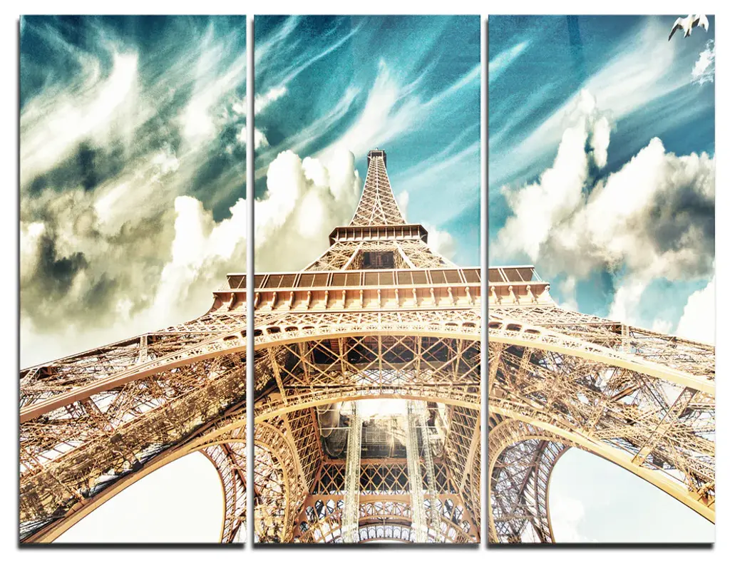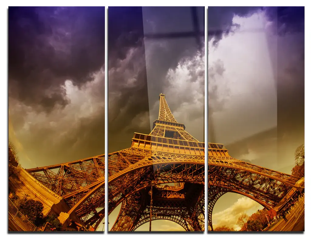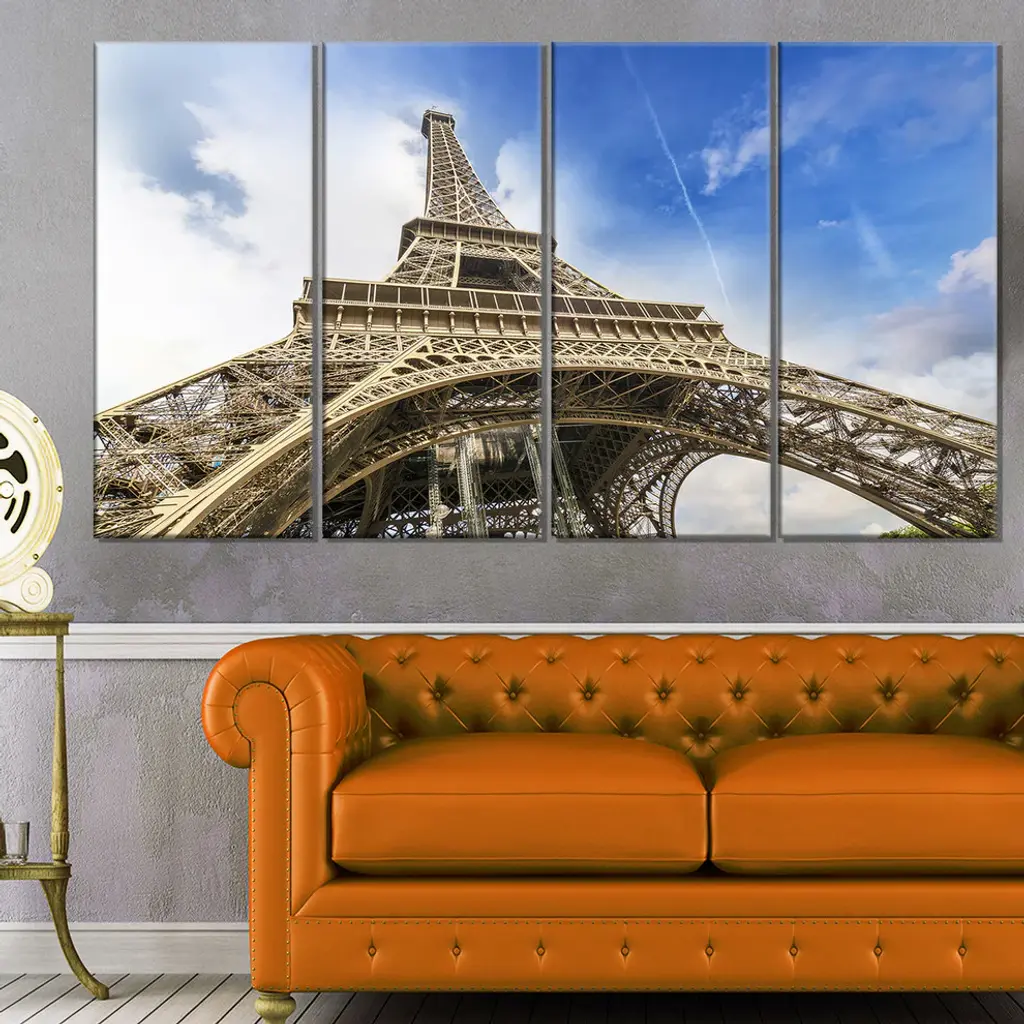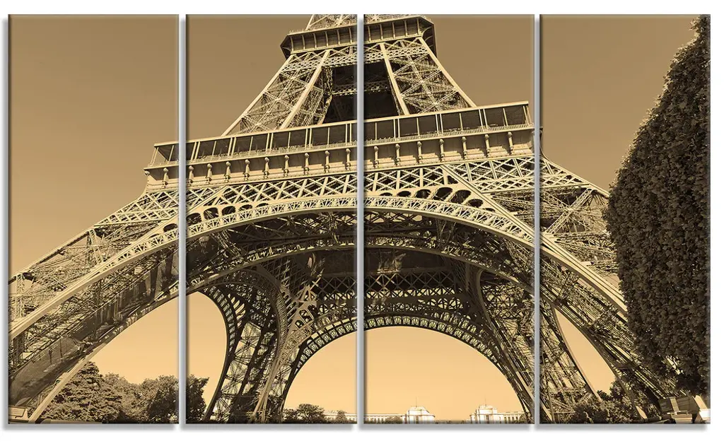 "Fantastic View Of Paris Eiffel Tower From Ground" Wall Art, 48"x28", 4-Panels