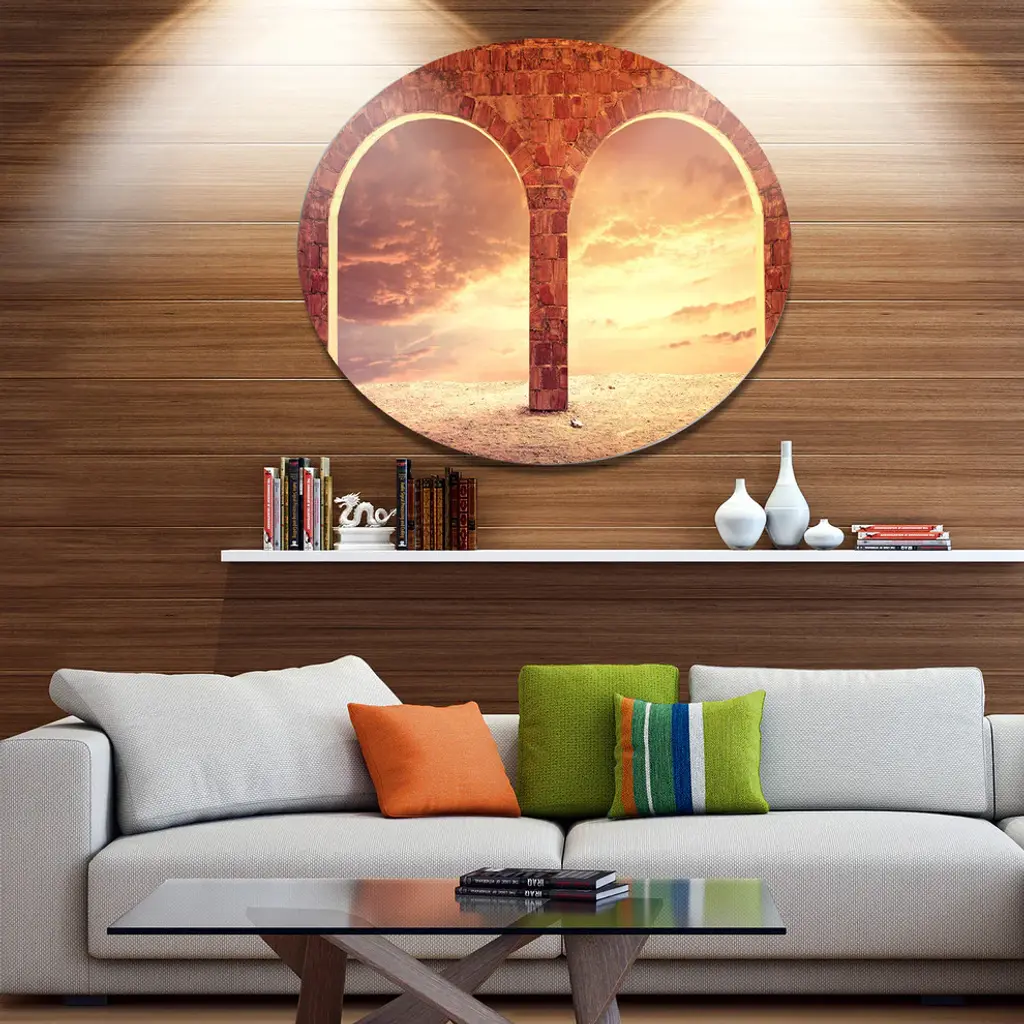 Fantasy Background With Two Arches, Landscape Disc Metal Wall Art, 23"