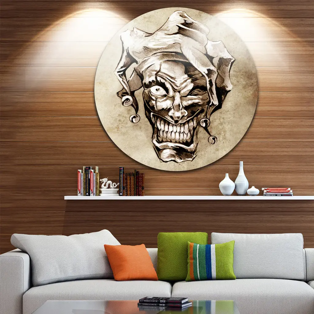 Fantasy Clown Joker, Portrait Digital Art Round Metal Wall Art, 23"