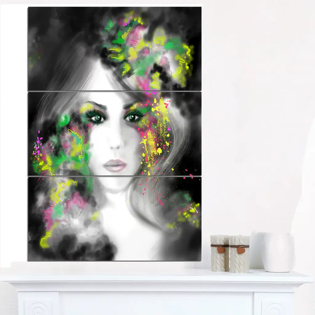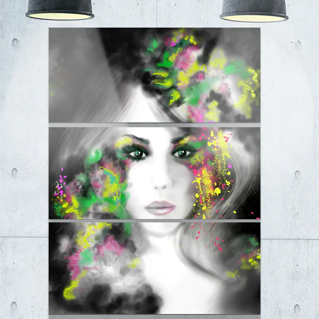 Bring contemporary abstraction to your home with this large 28W x 36H Metal Wall Art. This Fantasy Portrait Woman Metal Artwork makes it the focal point of any room or office. - White gloss coating ensures colors are extra vibrant with light reflection.- Aluminum grade sheet metal with 1-inch mounting frame on the back giving the illusion that the artwork is floating on the wall.- Mounting brackets are included along with instructions.- High quality digital images are created directly into a glossy aluminum panel producing a stunning and captivating print into the glossy finish of the metal.- Water, fire and scratch resistant HD aluminum panels.- Looks better than any photo paper and guaranteed to last at least 20 years- Easy to clean with a microfiber cloth. Colors are far superior to regular canvas art. - Easy to hang