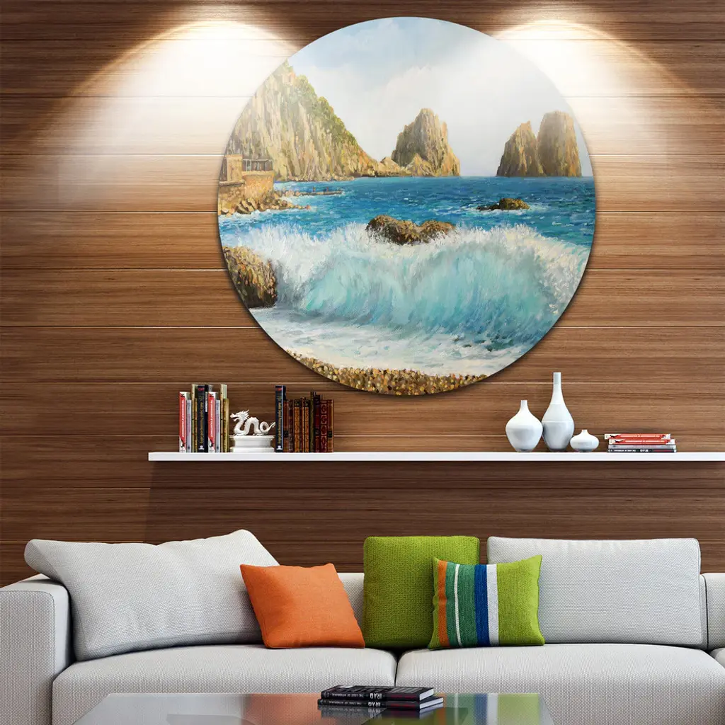 Faraglioni On Island Capri, Seascape Painting Disc Metal Wall Art, 11"