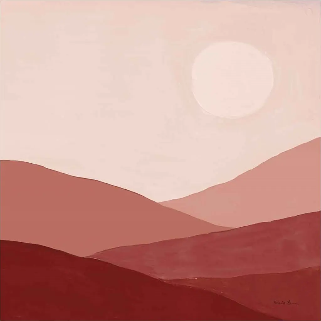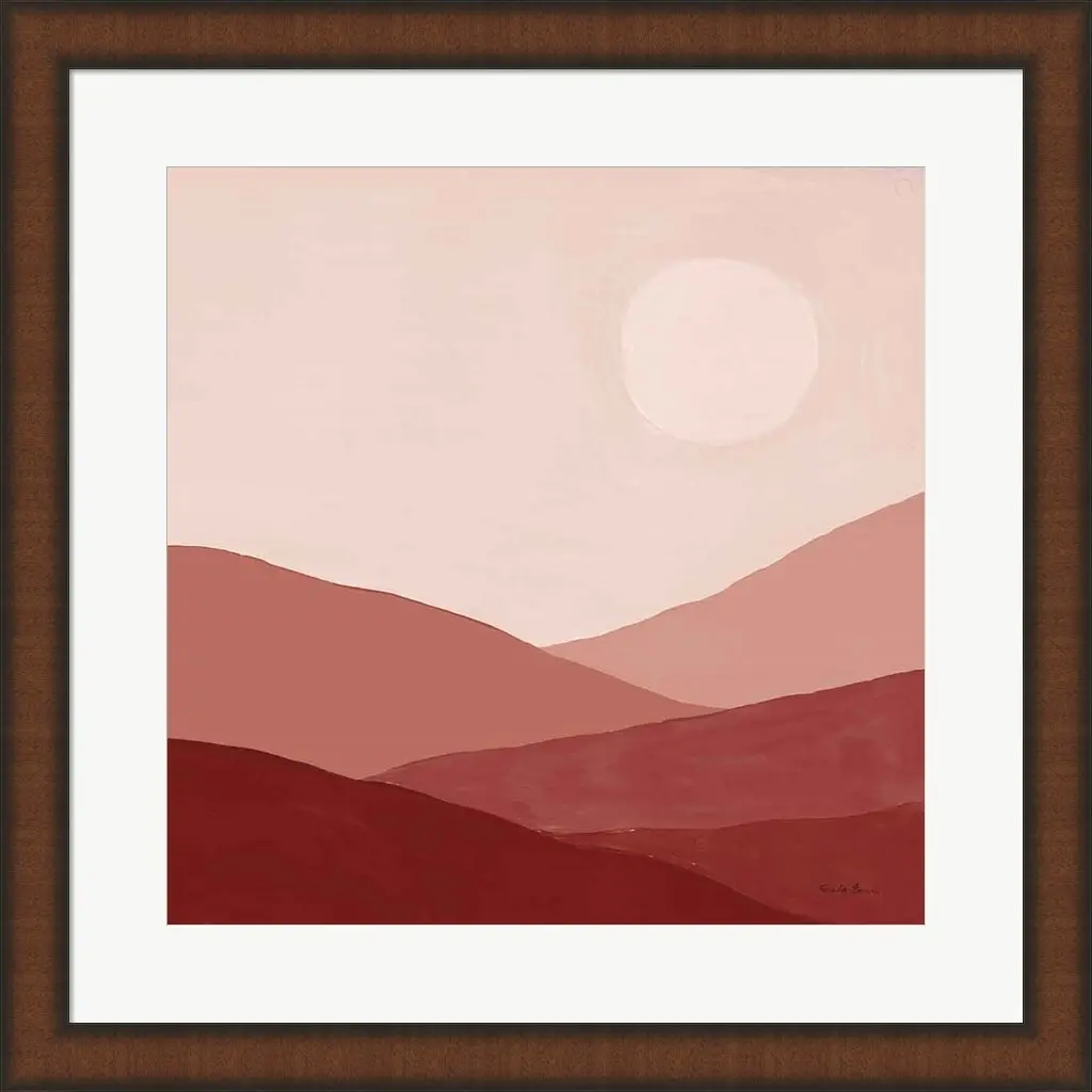 Warm Desert Landscape I by Farida Zaman is a high quality piece of framed artwork. The finished size of this piece is 19.75" X 19.75". It has a Slim Teak Espresso Brown Edges frame, is single matted and finished with high quality Glass. 100% Satisfaction Guaranteed.