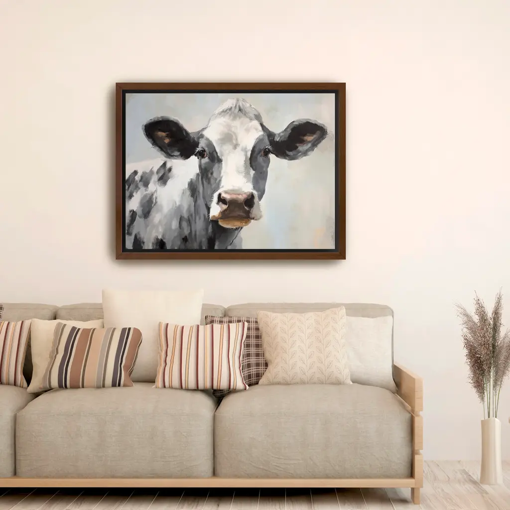 Farm Cow Canvas Giclee Wall Art - Framed / Oak / 30x40