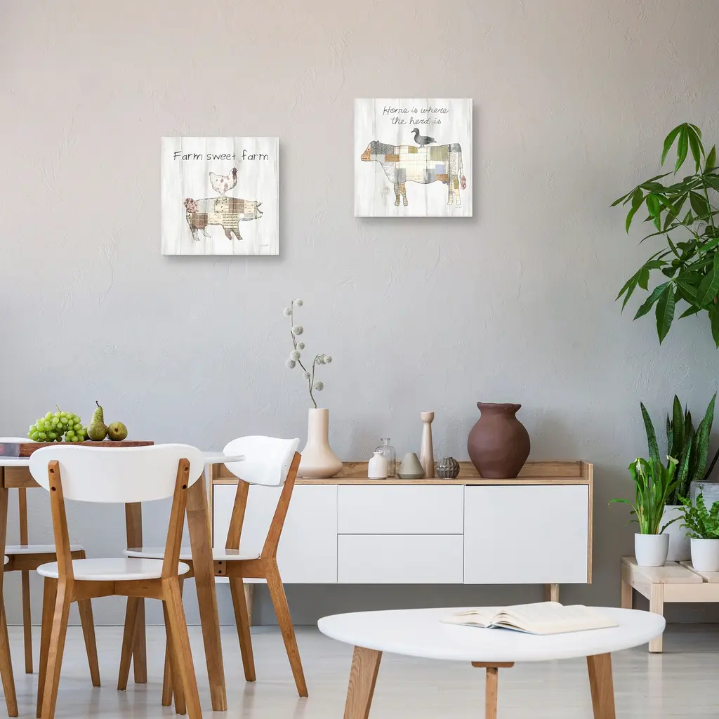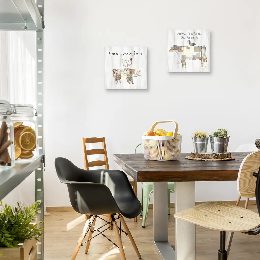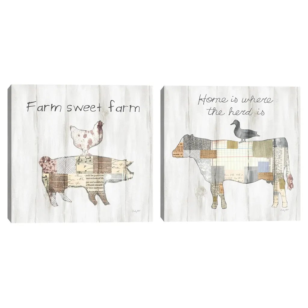 These farmland critters are the perfect accompaniment to any country or modern farmhouse abode and are here to remind you that "home is where the herd is." A gentle reminder that there's no place like your very own "farm sweet farm," this set of prints is perfect for living rooms, dining rooms, kitchens, hallways, or entryways. Produced with full-bleed printing that covers the entirety of the canvas, your new masterpieces are made with state-of-the-art technology that provides museum-quality prints. Our print process ensures each piece is produced to showcase the finest details, letting the artwork truly shine. Plus, our expert craftsmanship guarantees a clean and professional look without the need for framing.