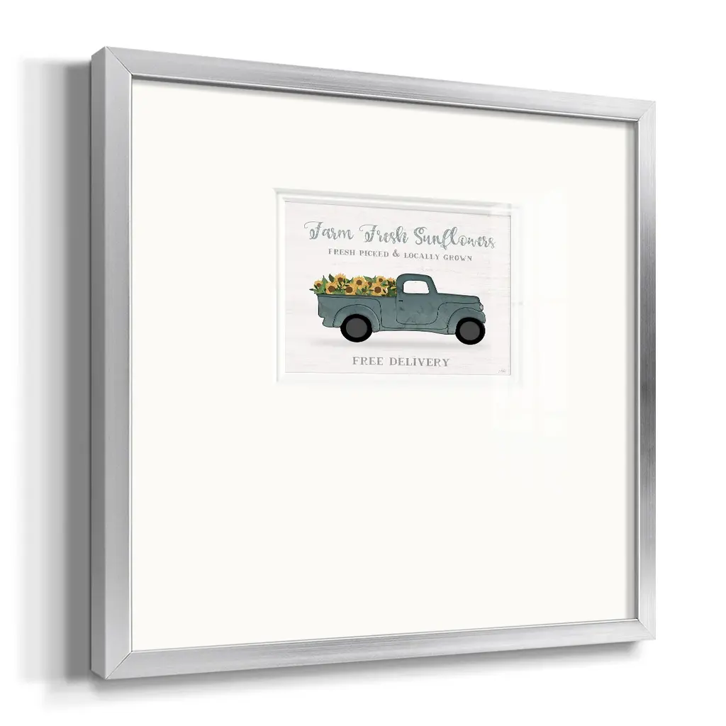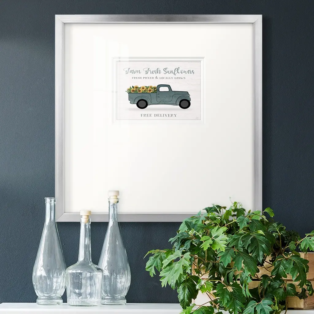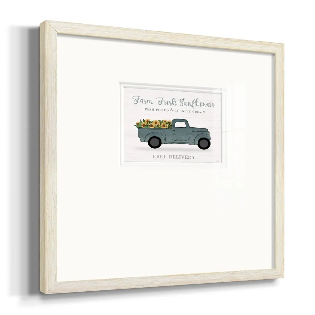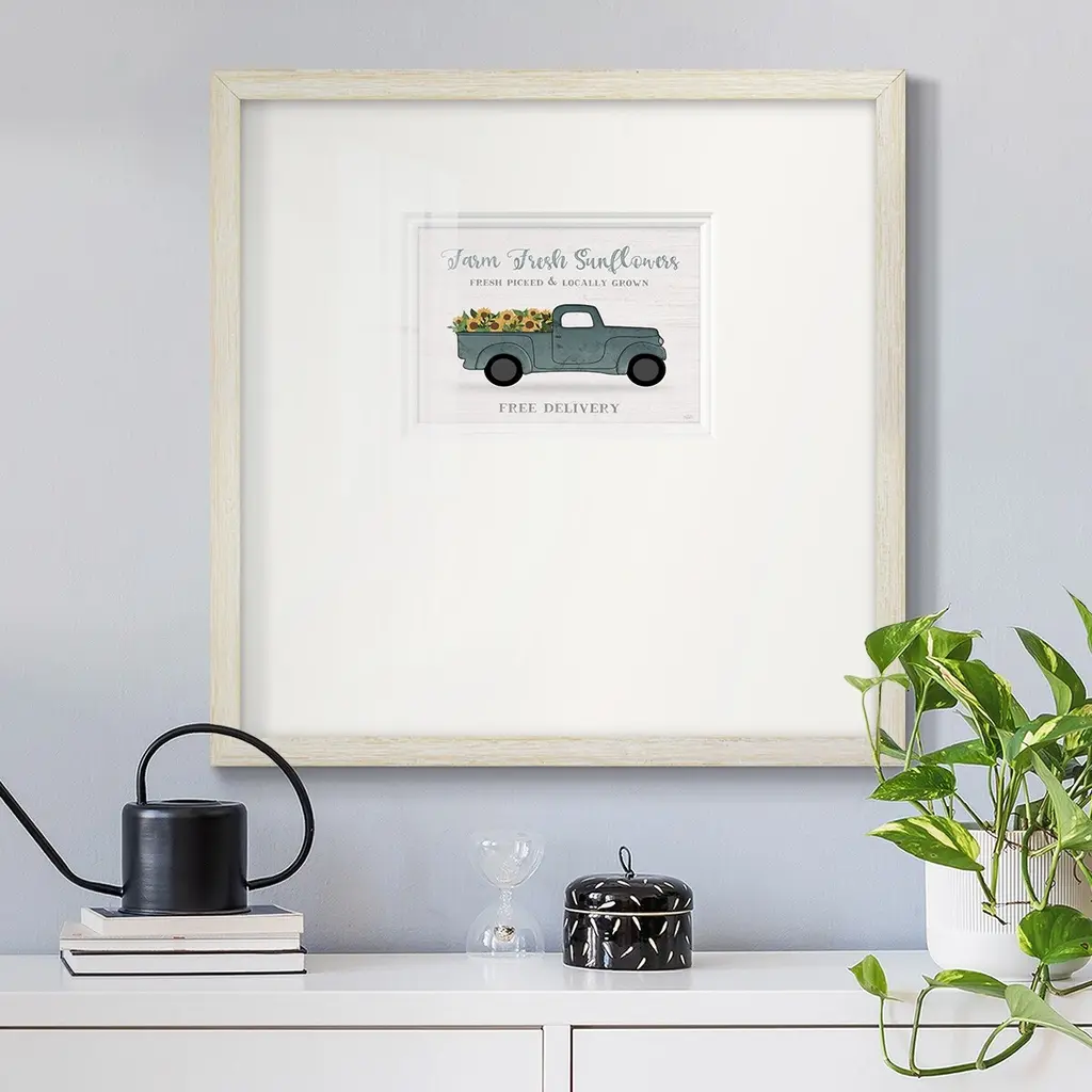 Farmers Market TruckPremium Framed Print A framed cold pressed paper print featuring superior double matting and quality frame. 2 SIZES AVAILABLE 16''X16''' - Overall Size 20''X20''' - Overall Size Each piece is made to order. Each piece comes with hanging hardware. Made in the USA Ready to Hang Giclee Paper Print Plexiglass Beveled Matt Board Double Matte Board