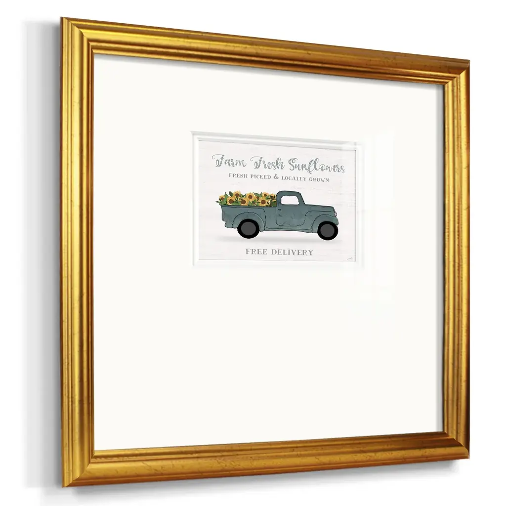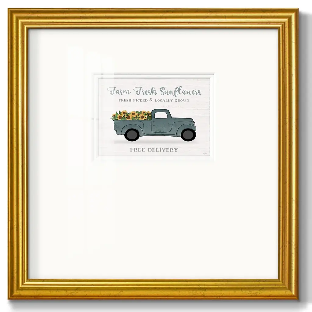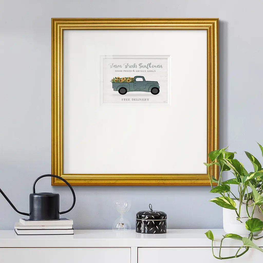 Farmers Market TruckPremium Framed Print A framed cold pressed paper print featuring superior double matting and quality frame. 2 SIZES AVAILABLE 16''X16''' - Overall Size 20''X20''' - Overall Size Each piece is made to order. Each piece comes with hanging hardware. Made in the USA Ready to Hang Giclee Paper Print Plexiglass Beveled Matt Board Double Matte Board