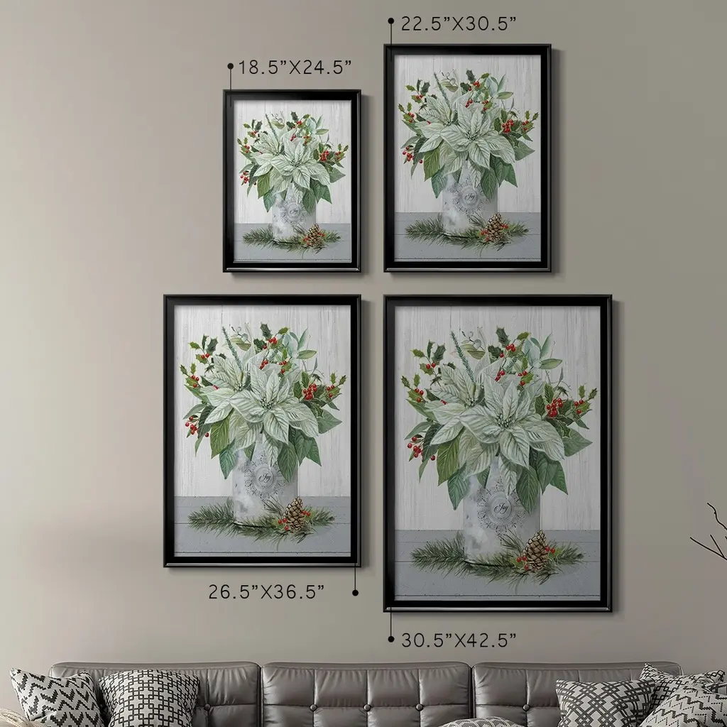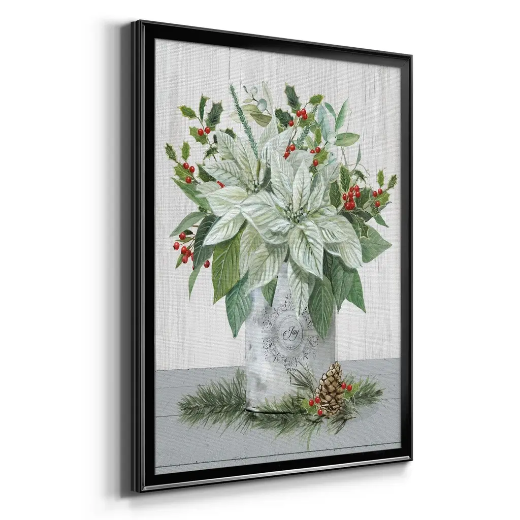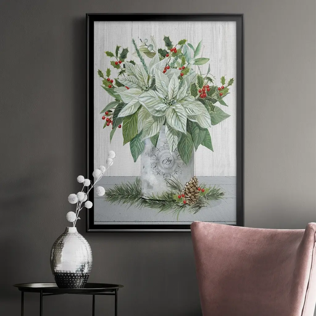 Farmhouse Christmas Joy Premium Framed Print - Ready to Hang A Premium Framed Print created to last. Framed in distressed wood and available in an array of sizes and colors Featuring a beveled a solid wood stretcher bar, each piece comes ready to hand 4 SIZES AVAILABLE 30.5''X42.5'' - Overall Size 26.5'X36.5'' - Overall Size 22.5''x30.5'' - Overall Size 18.5''x24.5'' - Overall Size Each piece is made to order. Each piece comes with hanging hardware. Made in the USA Ready to Hang
