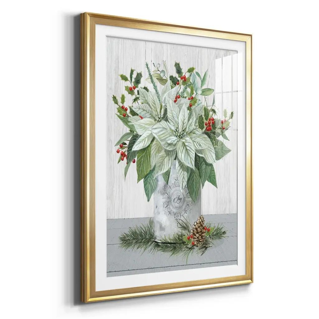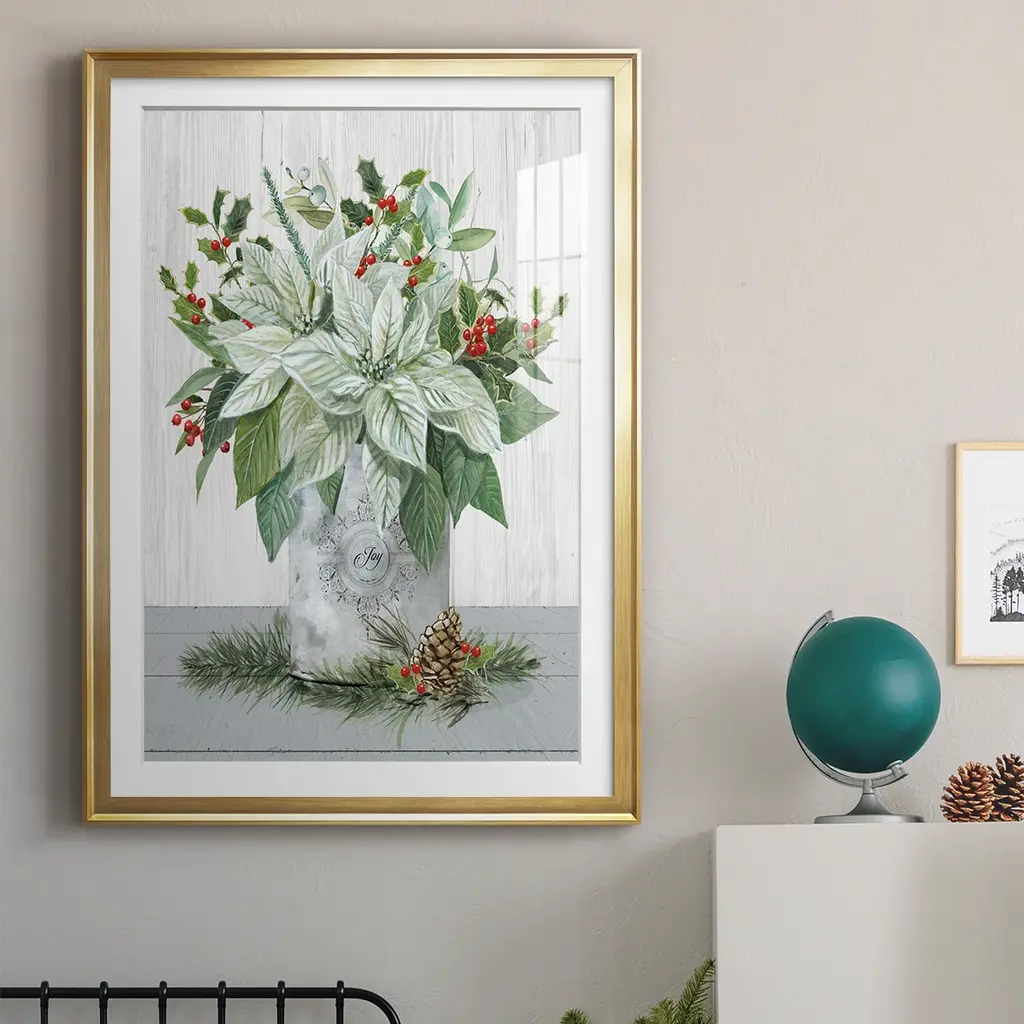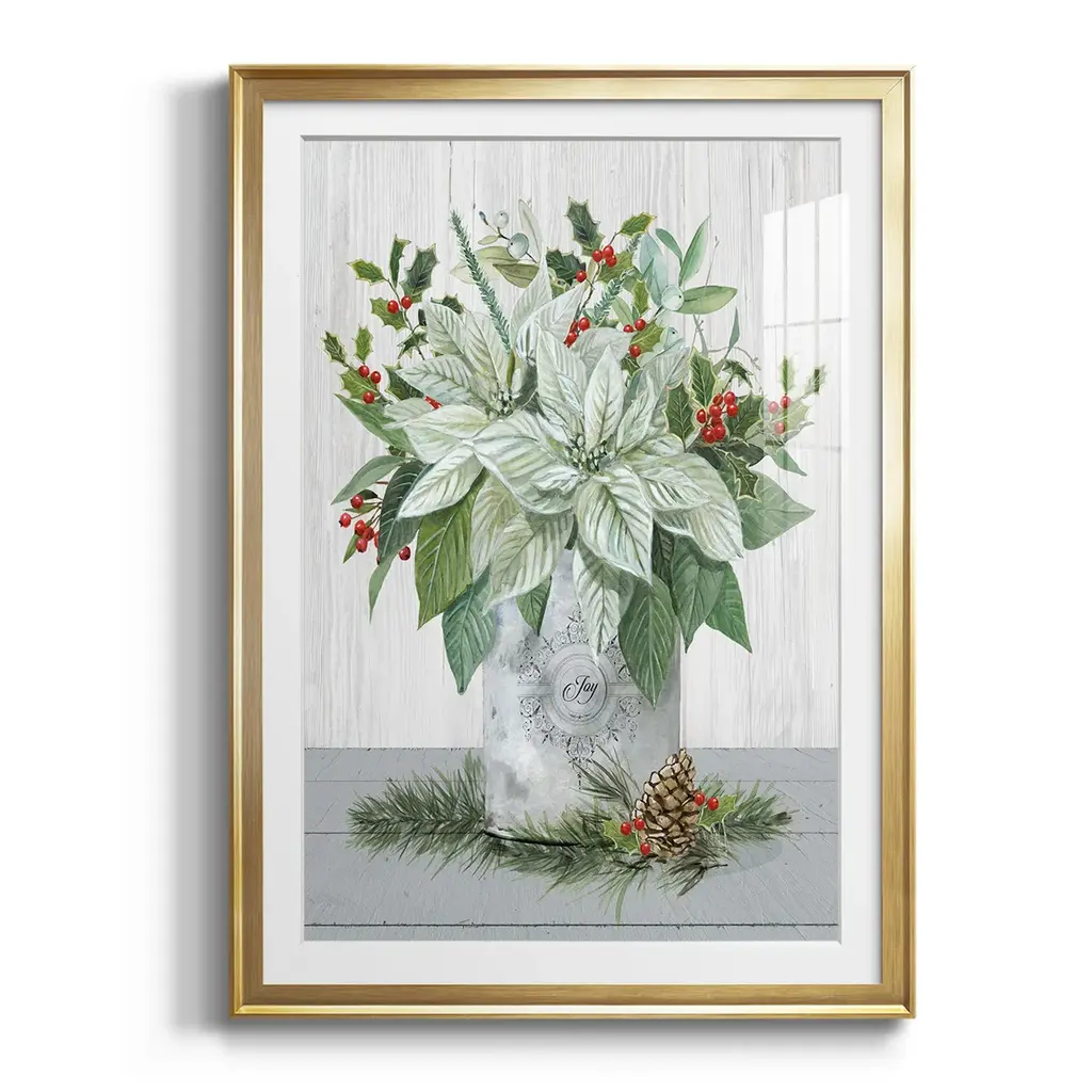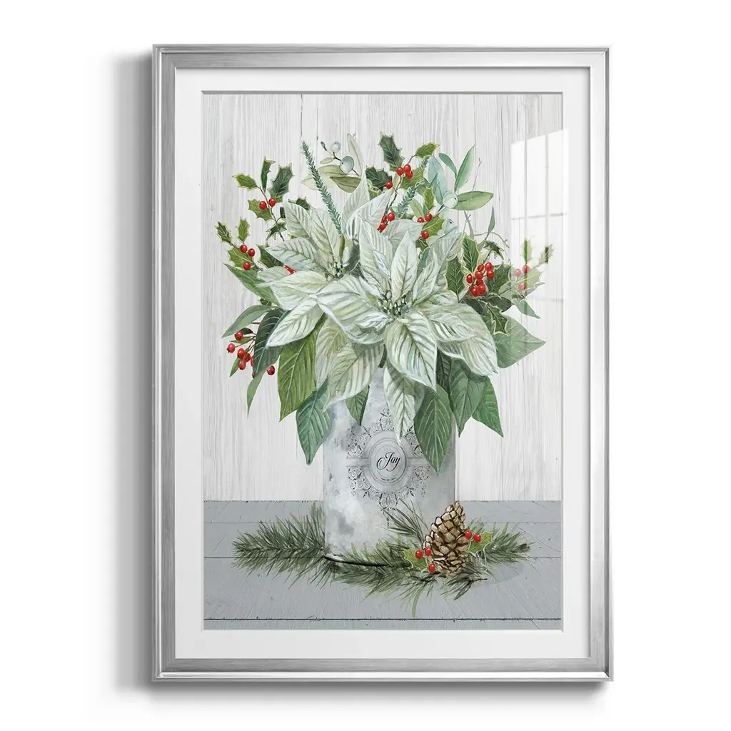 Farmhouse Christmas Joy Premium Framed Print - Ready to Hang A Premium Framed Print created to last. Framed in distressed wood and available in an array of sizes and colors Featuring a beveled a solid wood stretcher bar, each piece comes ready to hand 4 SIZES AVAILABLE 30.5''X42.5'' - Overall Size 26.5'X36.5'' - Overall Size 22.5''x30.5'' - Overall Size 18.5''x24.5'' - Overall Size Each piece is made to order. Each piece comes with hanging hardware. Made in the USA Ready to Hang Giclee Paper Print Acrylic Glass Beveled Matt Board