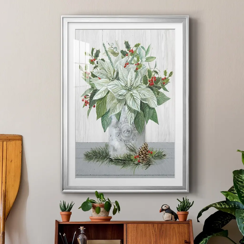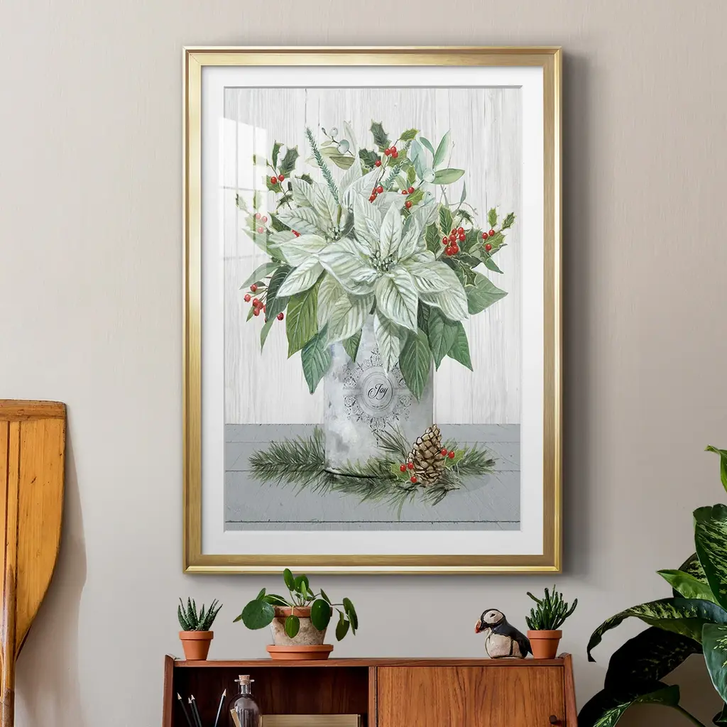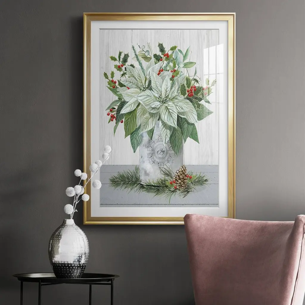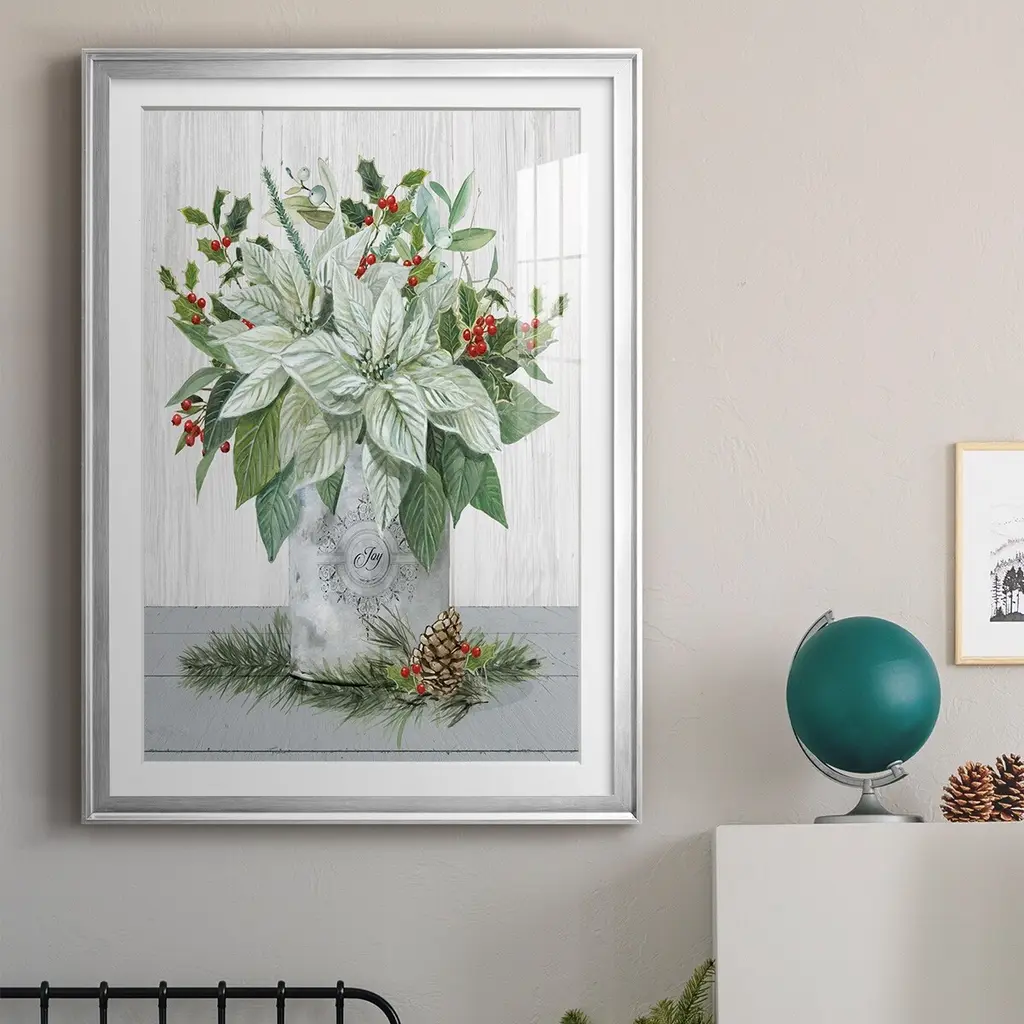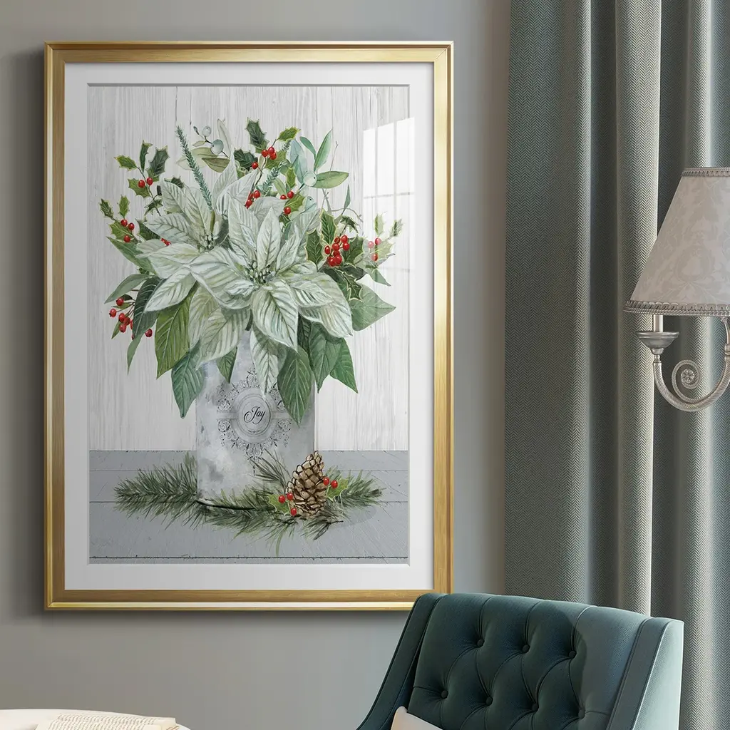 Farmhouse Christmas Joy Premium Framed Print - Ready to Hang A Premium Framed Print created to last. Framed in distressed wood and available in an array of sizes and colors Featuring a beveled a solid wood stretcher bar, each piece comes ready to hand 4 SIZES AVAILABLE 30.5''X42.5'' - Overall Size 26.5'X36.5'' - Overall Size 22.5''x30.5'' - Overall Size 18.5''x24.5'' - Overall Size Each piece is made to order. Each piece comes with hanging hardware. Made in the USA Ready to Hang Giclee Paper Print Acrylic Glass Beveled Matt Board