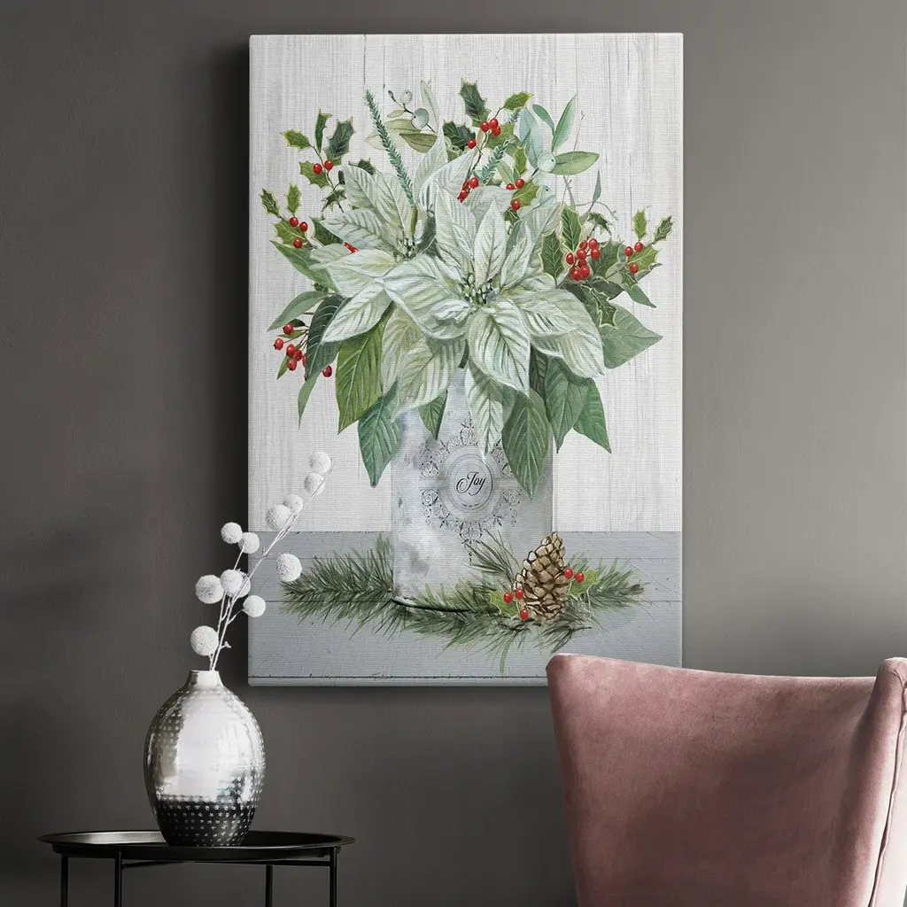 Farmhouse Christmas Joy Premium Gallery Wrapped Canvas - Ready to Hang A premium hand stretched gallery wrapped canvas print created to last. Featuring a beveled a solid wood stretcher bar, each piece comes ready to hand 6 SIZES AVAILABLE 8''X12'' - Overall Size 12''X18'' - Overall Size 18''X27'' - Overall Size 24''x36'' - Overall Size 32''x48'' - Overall Size 40''x60'' - Overall Size Each piece is made to order. Built to Last Each piece comes ready to hang Solid wood stretcher Fade and Water resistant Made domestically