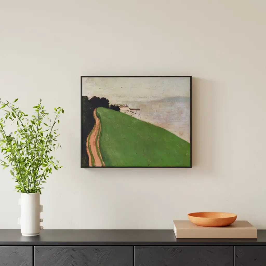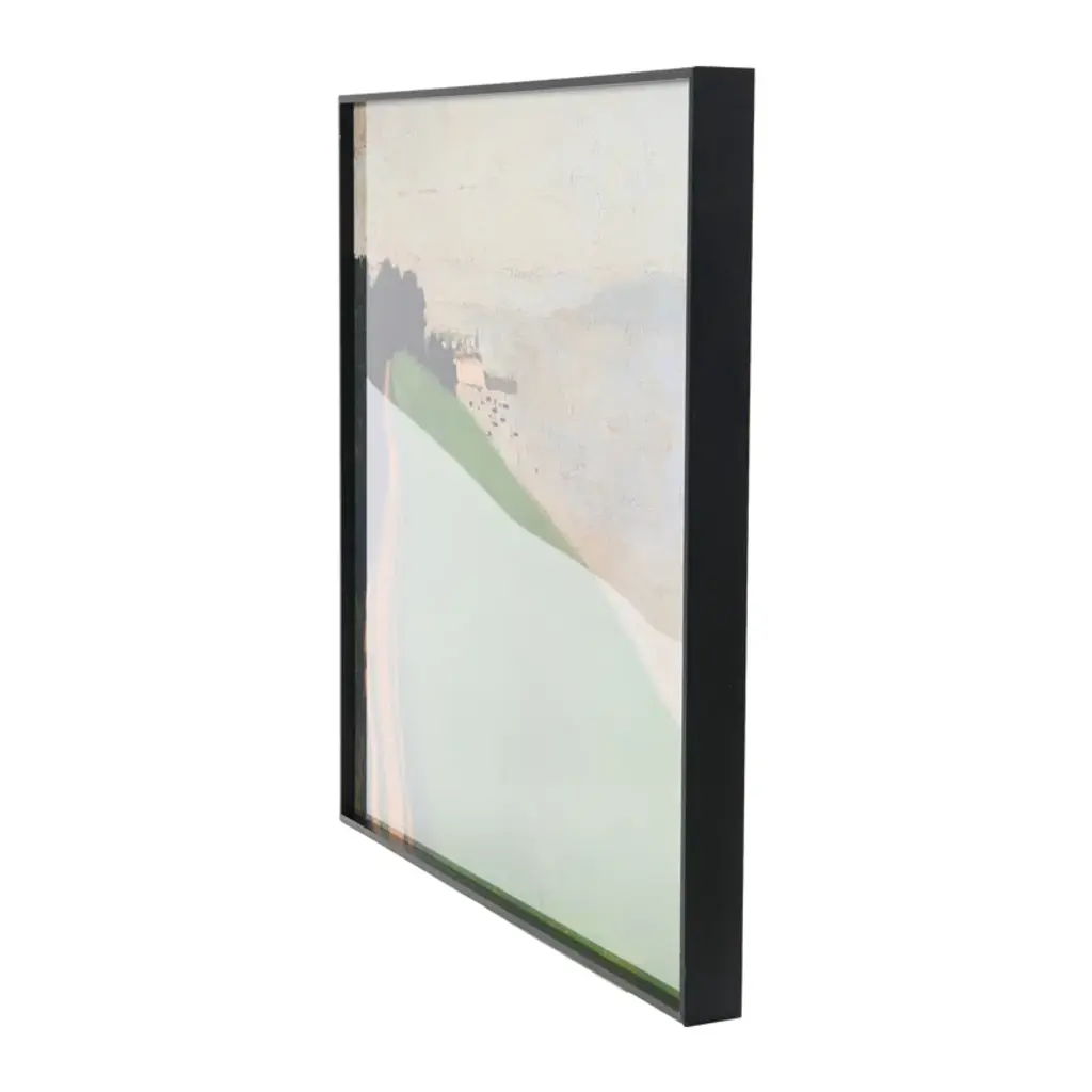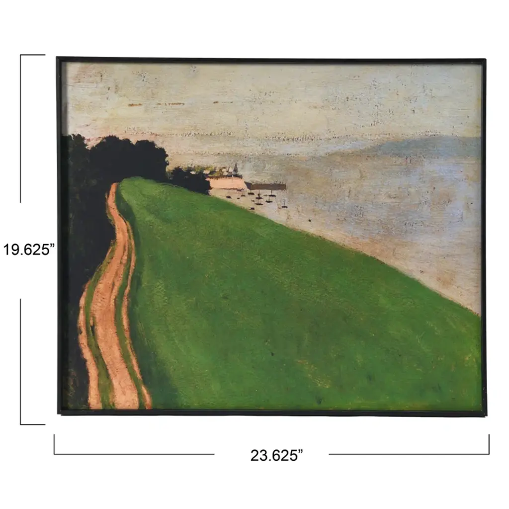 This picture frame print lets you add an elegant touch to your space. The rich coloring and tranquil subject matter offer a sophisticated, vintage look we love. It's printed on canvas and has primary hues of green, black, and brown throughout the abstract interpretation of this seaside landscape. Best of all, it comes with hanging hardware included, so it's easy to add to your wall as soon as it arrives. Or, you can even prop it up against a wall or bookshelf for a relaxed, cool-casual vibe.