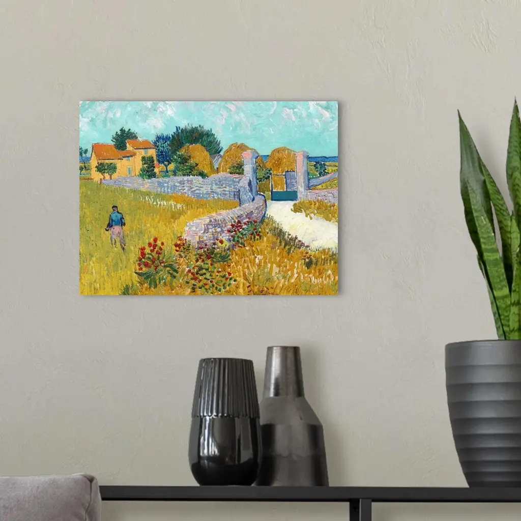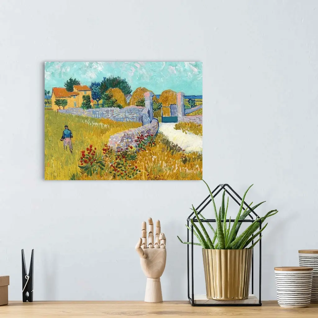 Farmhouse in Provence, by Vincent van Gogh, 1888, Dutch Post-Impressionist painting, oil on canvas. Van Gogh's time in Arles was amazingly productive. In about 15 months?just 444 days?he produced more than 200 paintings, and about 100 drawings