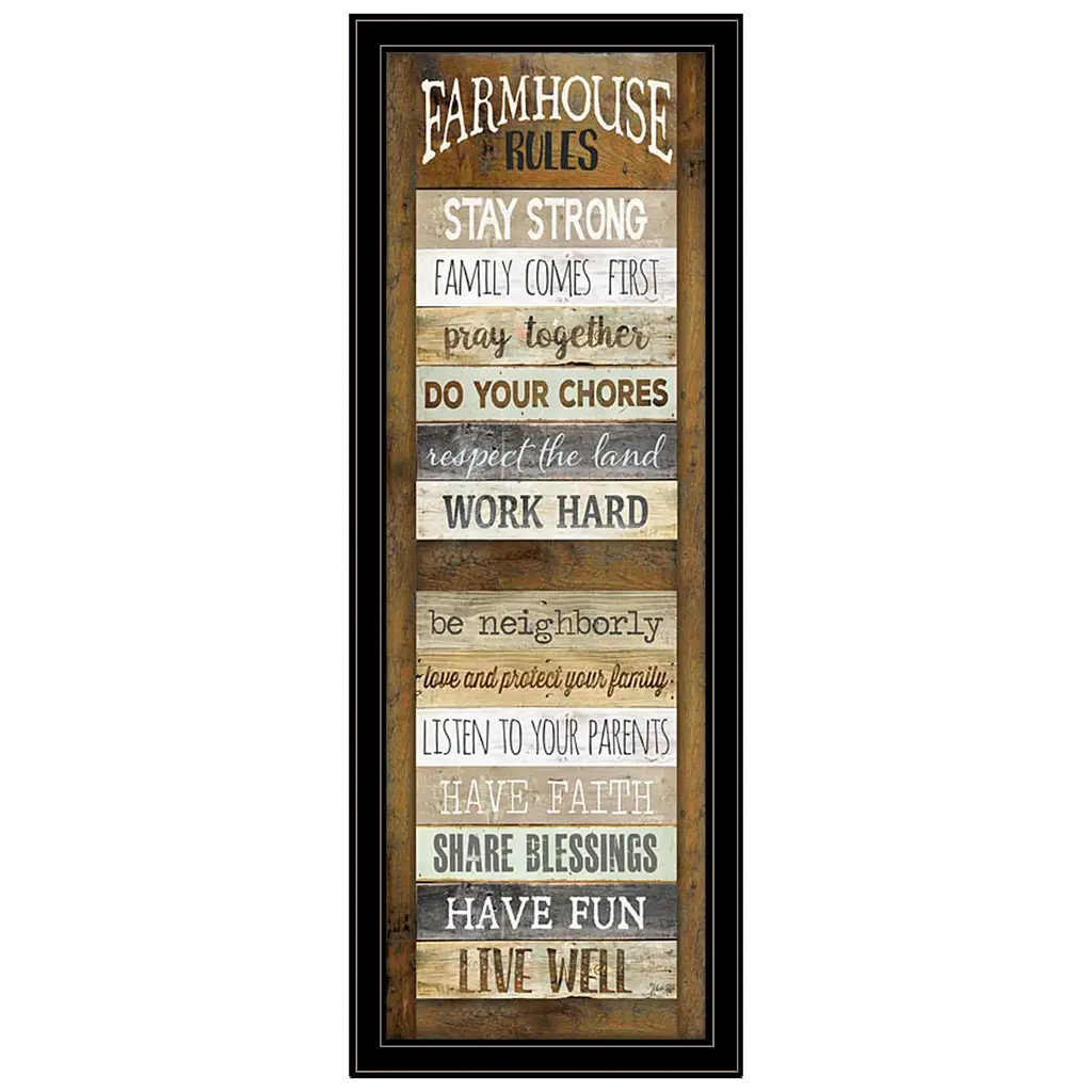 The farmhouse rules 4 black framed print wall art is the perfect decorative accessory for your home. This print is a visual artistic expression that allows you to decorate your space in style. Reproduced for you on paper, this hanging decorative accent will be a trendy and fashionable way to dress your walls. Adding this hanging wall art to your space to make your room feel more finished and attractive. Instantly liven up your space with this art that brings color and dimension to your walls. 39" H x 15" W x 1" D