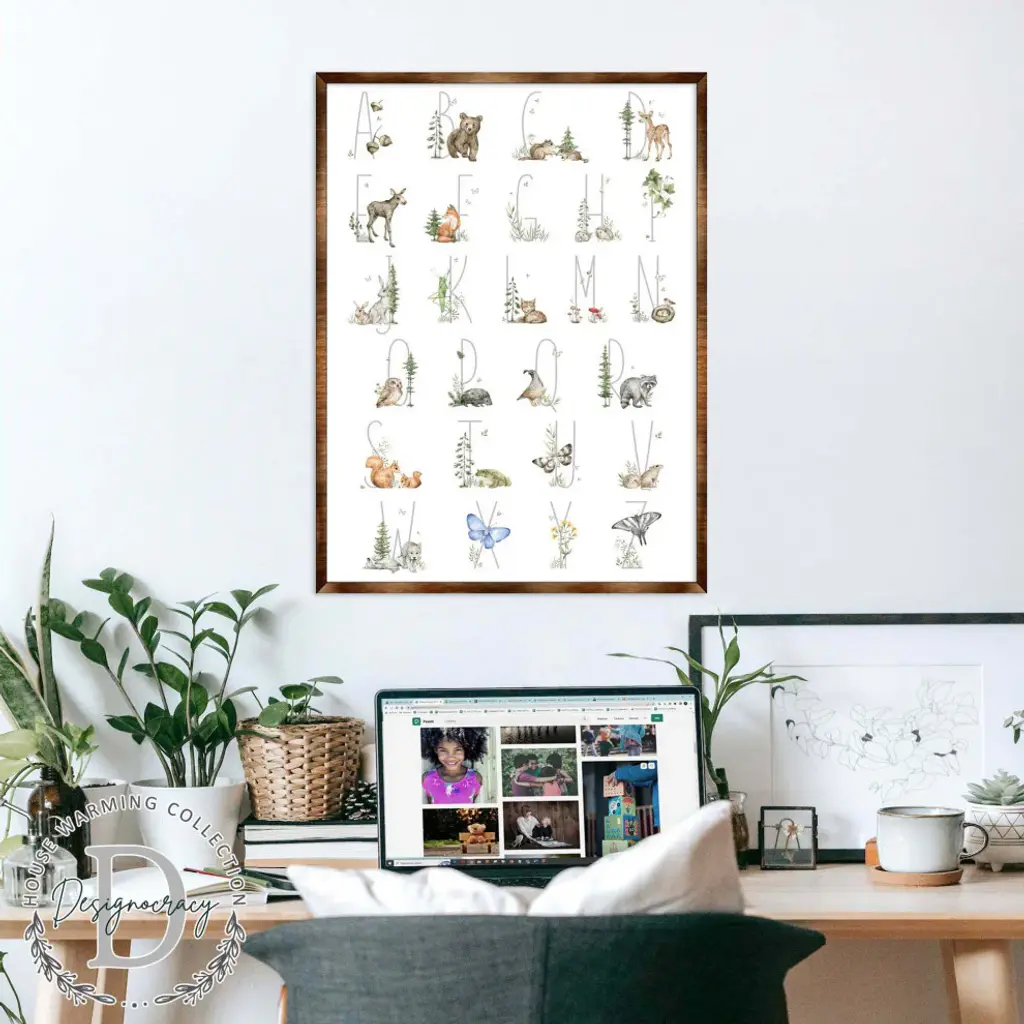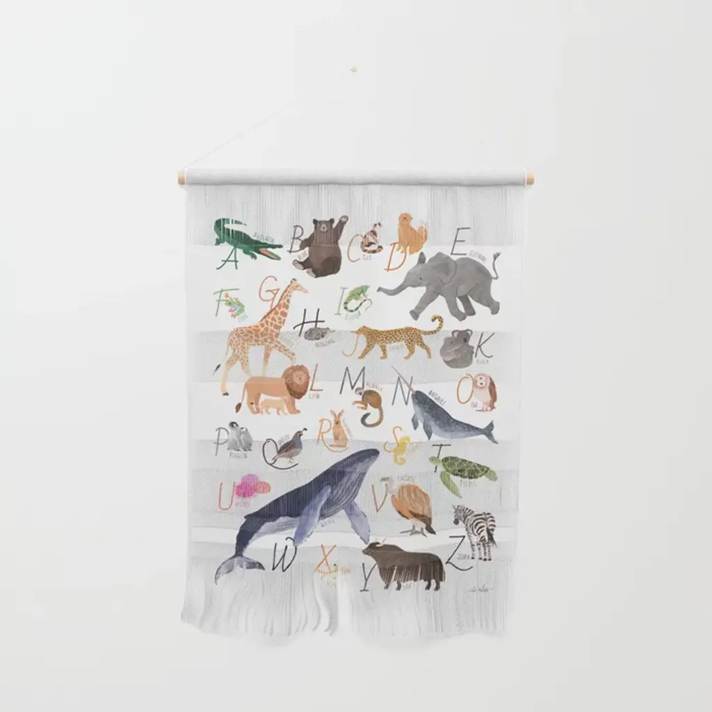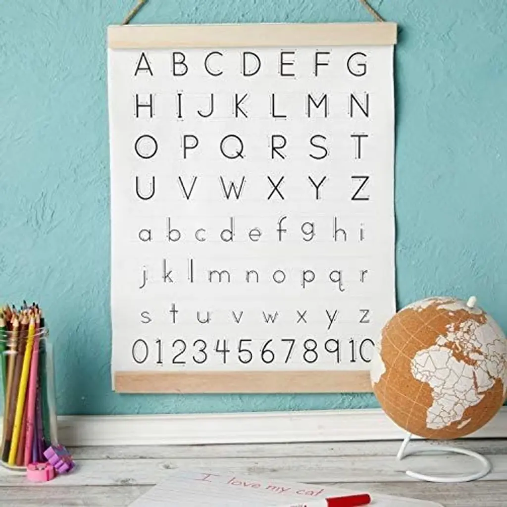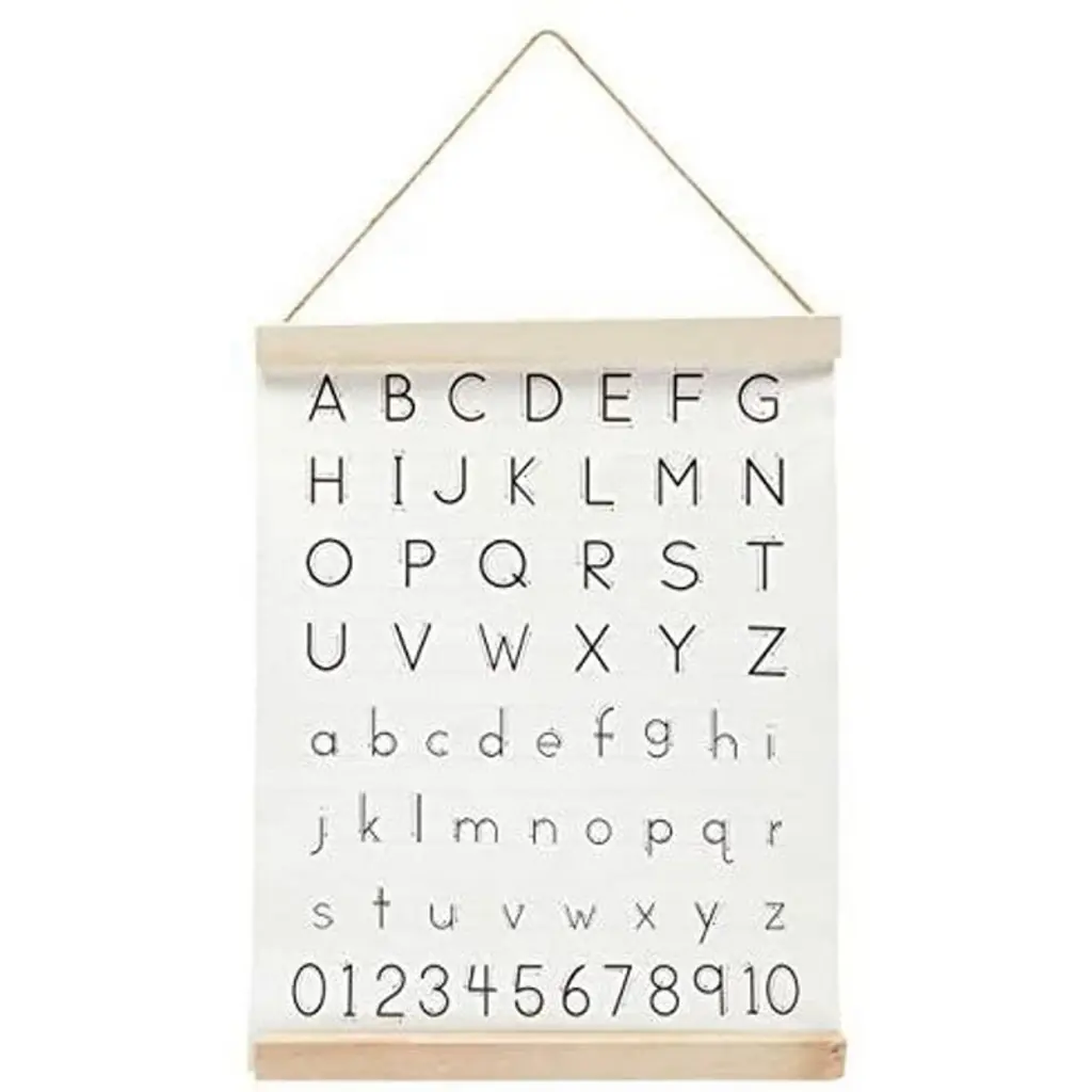 Decorate the walls in your little one's nursery with this alphabet wall art banner. Our nursery decor features white canvas printed with upper and lower case letters of the alphabet as well as numbers 0-10. This minimalistic decor piece measures 13 x 17 inches, not including the hemp rope, perfectly sized to create a custom gallery wall. This educational wall hanging makes the perfect gift for expecting parents, teachers, and students.