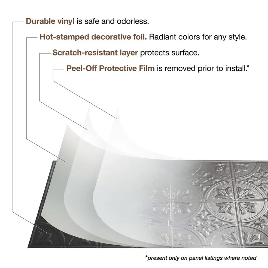 FASÄDE decorative 4 ft. x 8 ft. vinyl wall panels easily transform any room with their unique architectural design at a fraction of the cost of other decorative panels. The panels are water-resistant and durable which make them perfect for high abuse areas in your home including the garage, bathroom or utility room. Made from vinyl (PVC) material, these panels will not rust, corrode or stain and are hypoallergenic, resist mold, mildew and bacteria. The panels are light, flexible and easy to cut, eliminating the need for a contractor, only requiring a tape measure, scissors and adhesive for a for a quick installation. These decorative wall panels come in 4 ft. x 8 ft. x 0.332-inch thick sheets in multiple styles and finishes from traditional to modern, so there is style and color for your all of your design needs.