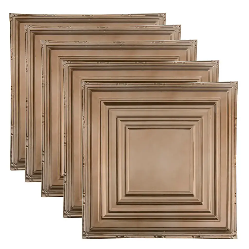 Fasäde Portrait Decorative Vinyl 2Ft X 4Ft Glue Up Ceiling Panel In Argent Bronze (5 Pack) - 12in X 12in Sample - Argent Bronze