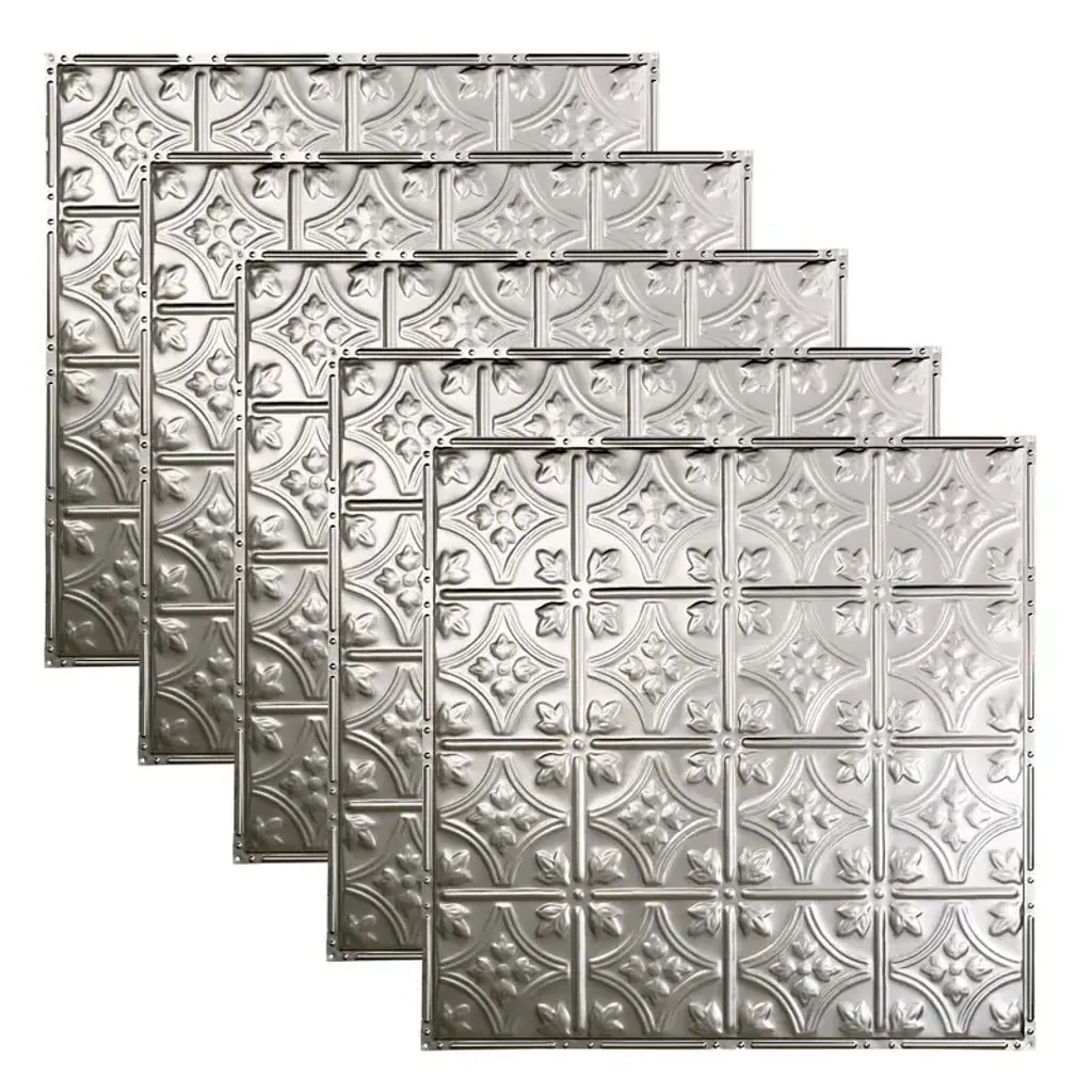 Fasäde Traditional 2 4-Foot X 8-Foot Pvc Wall Panel In Crosshatch Silver - 4 X 8