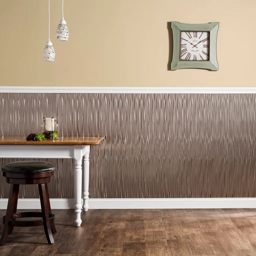 Fasäde Waves Vertical 4-Foot X 8-Foot Pvc Wall Panel In Brushed Nickel - 4 X 8