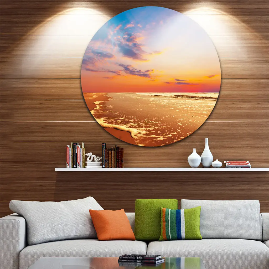 Fascinating Beach With Flowing Waves, Seascape Disc Metal Wall Art, 23"