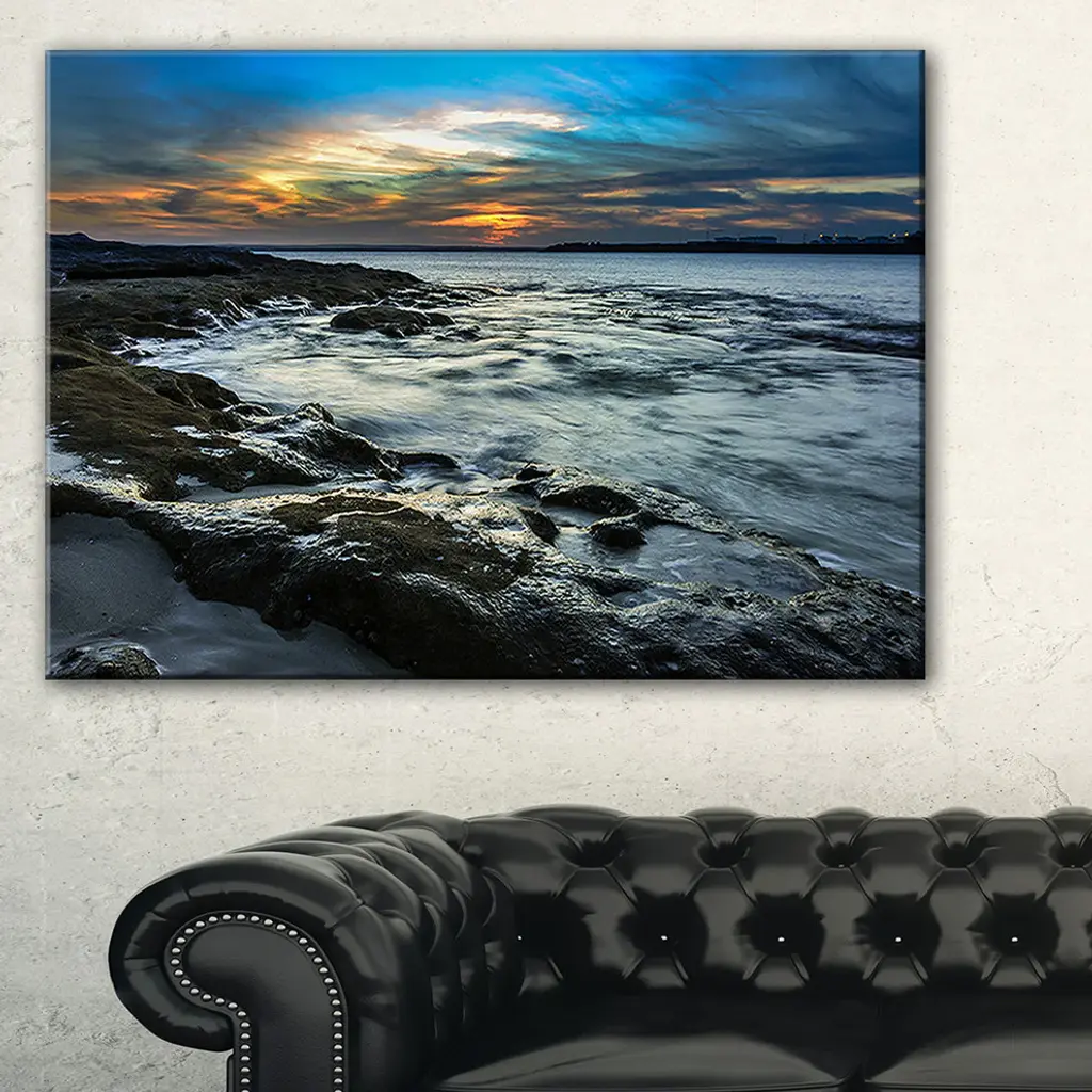 The Fascinating Sunset at Australia Coastline canvas art print is sure to make an impression on anyone who sees it. This artwork is gallery wrapped around a 1-inch solid wood frame and arrives carefully packaged and entirely ready to hang on the wall. Design Art only uses the highest resolution and pigments to ensure a crisp colorful print that is never faded or pixelated. This artwork is sure to be a conversation starter in any home or office.