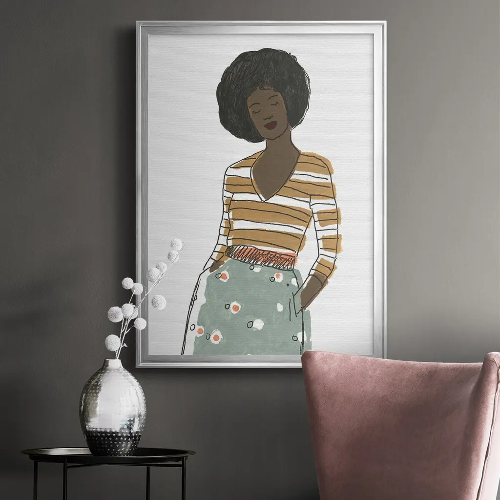 Fashion Vignette II Premium Framed Print - Ready to Hang A Premium Framed Print created to last. Framed in distressed wood and available in an array of sizes and colors Featuring a beveled a solid wood stretcher bar, each piece comes ready to hand 4 SIZES AVAILABLE 30.5''X42.5'' - Overall Size 26.5'X36.5'' - Overall Size 22.5''x30.5'' - Overall Size 18.5''x24.5'' - Overall Size Each piece is made to order. Each piece comes with hanging hardware. Made in the USA Ready to Hang