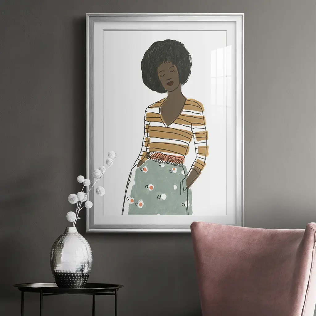 Fashion Vignette II Premium Framed Print - Ready to Hang A Premium Framed Print created to last. Framed in distressed wood and available in an array of sizes and colors Featuring a beveled a solid wood stretcher bar, each piece comes ready to hand 4 SIZES AVAILABLE 30.5''X42.5'' - Overall Size 26.5'X36.5'' - Overall Size 22.5''x30.5'' - Overall Size 18.5''x24.5'' - Overall Size Each piece is made to order. Each piece comes with hanging hardware. Made in the USA Ready to Hang Giclee Paper Print Acrylic Glass Beveled Matt Board